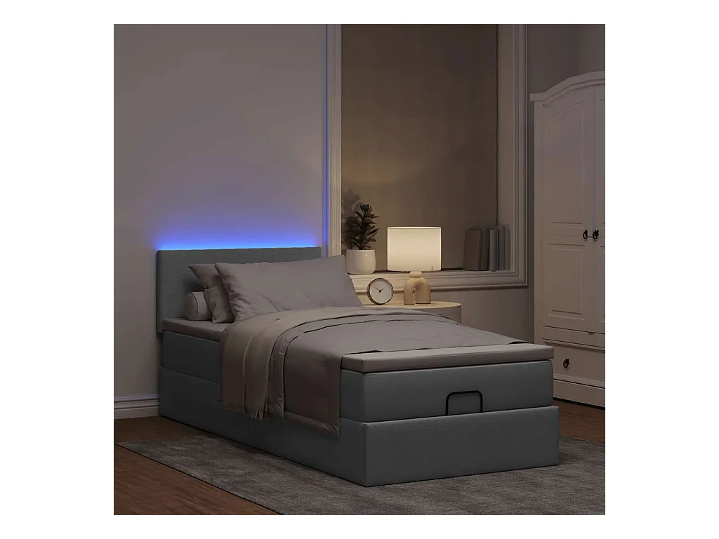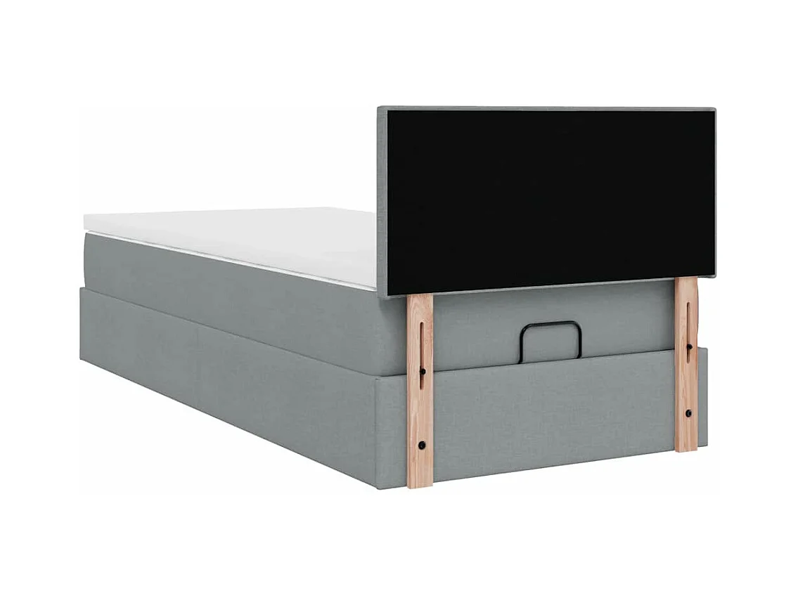 Lit ottoman avec matelas gris clair 90x200 cm tissu