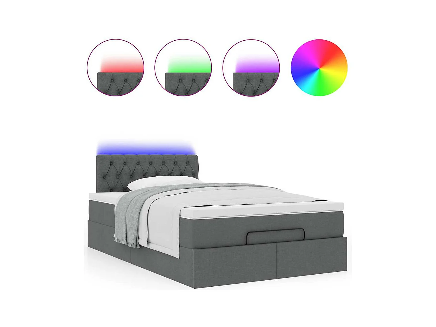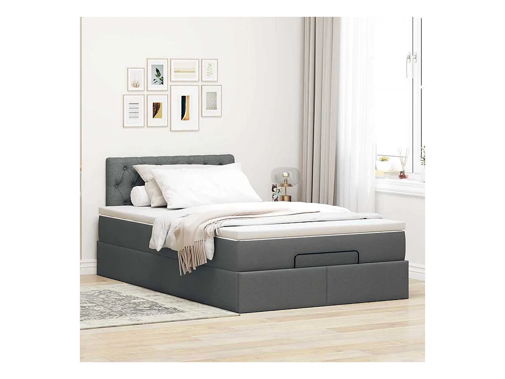 Cadre de lit ottoman avec matelas gris foncé 120x190 cm tissu