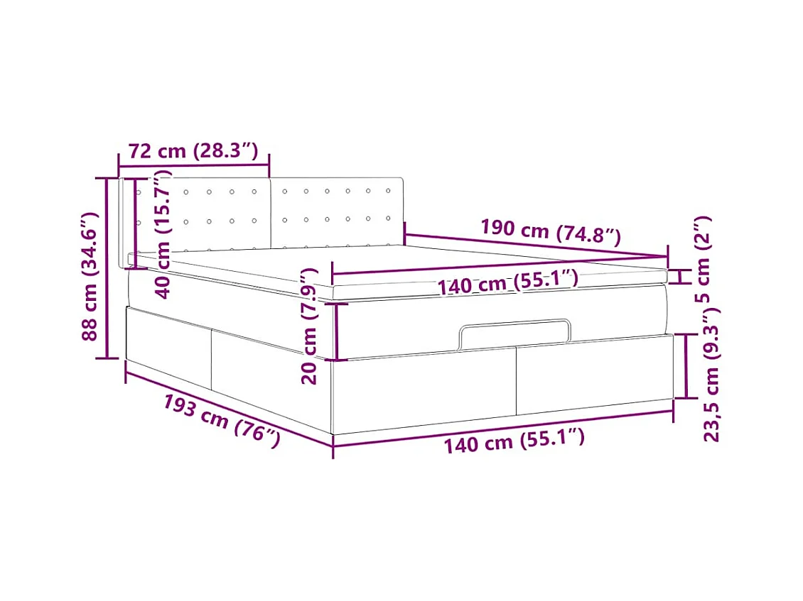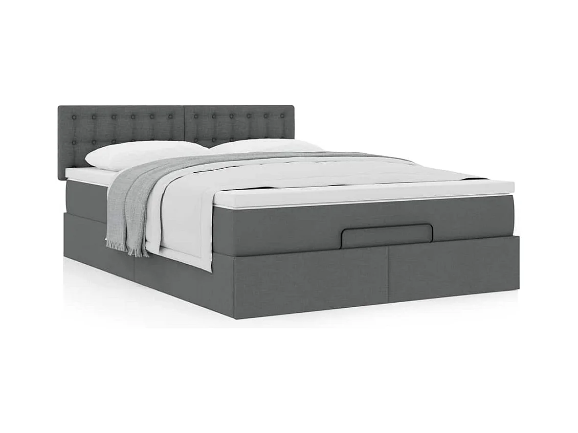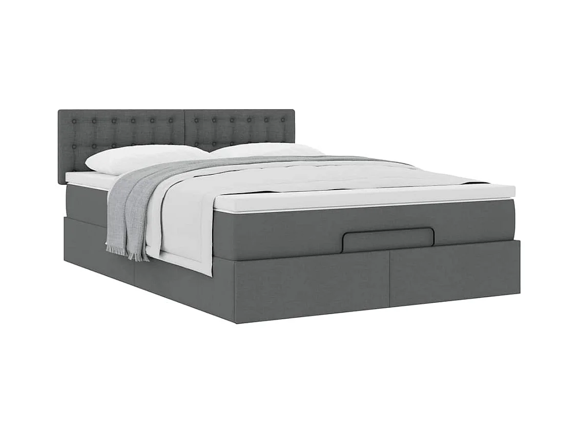 Cadre de lit ottoman avec matelas gris foncé 140x190 cm tissu