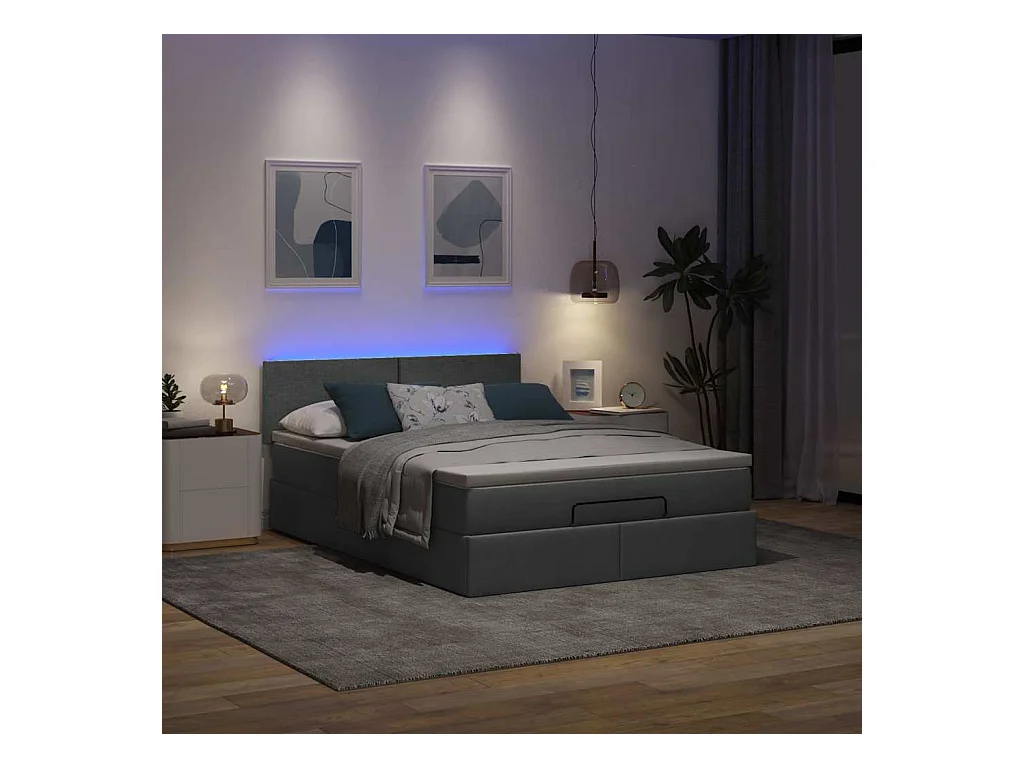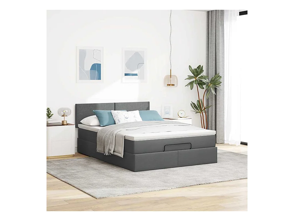Cadre de lit ottoman avec matelas gris foncé 160x200cm tissu