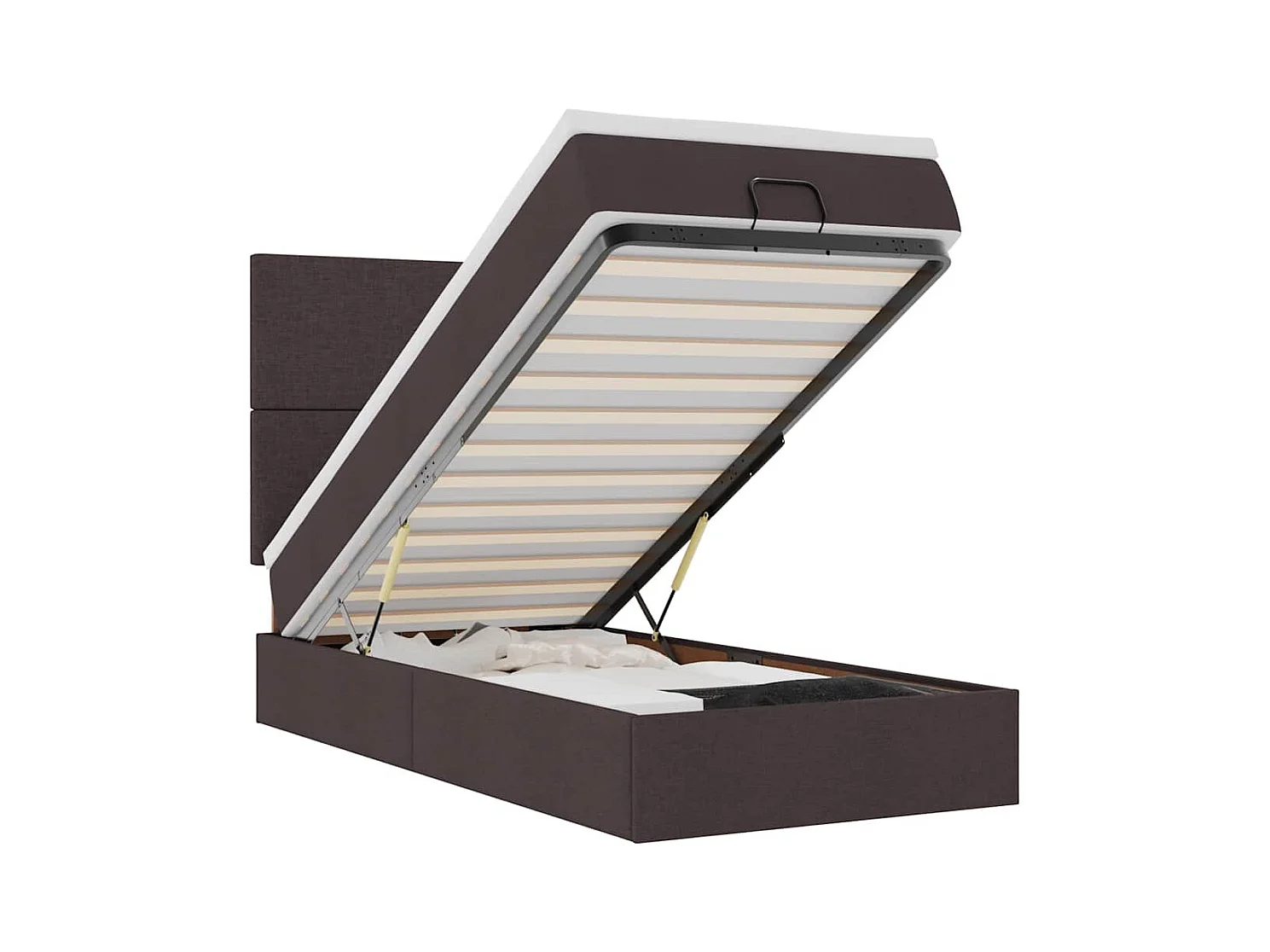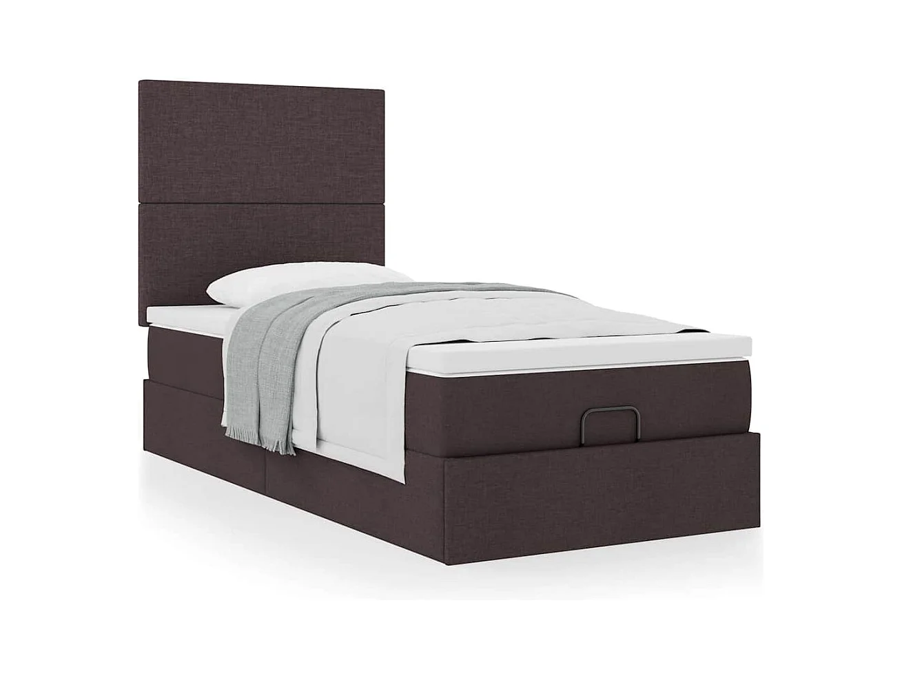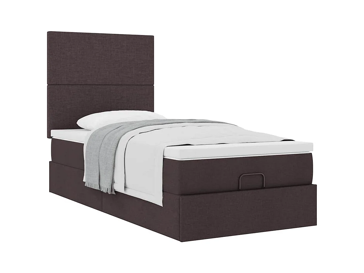 Lit ottoman avec matelas marron foncé 100x200 cm tissu