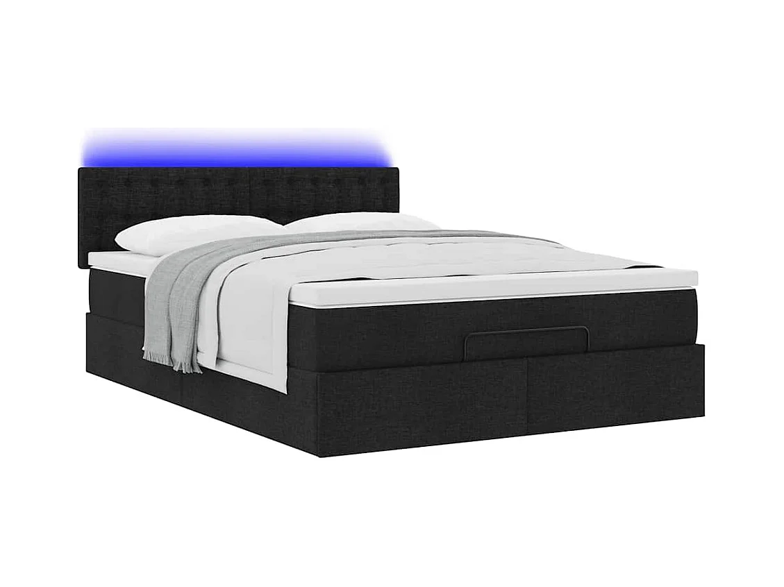 Lit ottoman avec matelas noir 140x190 cm tissu