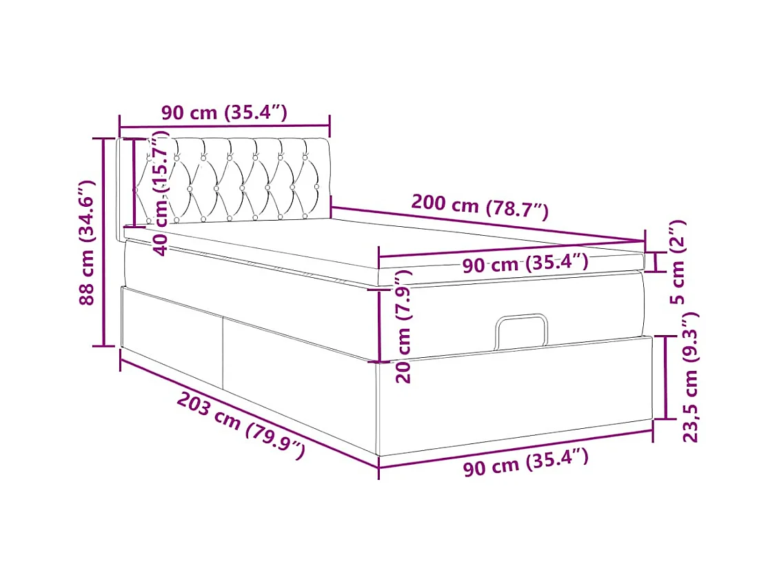 Cadre de lit ottoman avec matelas noir 90x200 cm similicuir