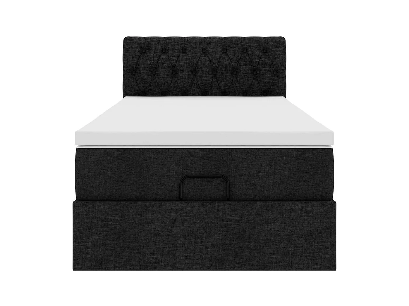 Cadre de lit ottoman avec matelas noir 90x200 cm tissu