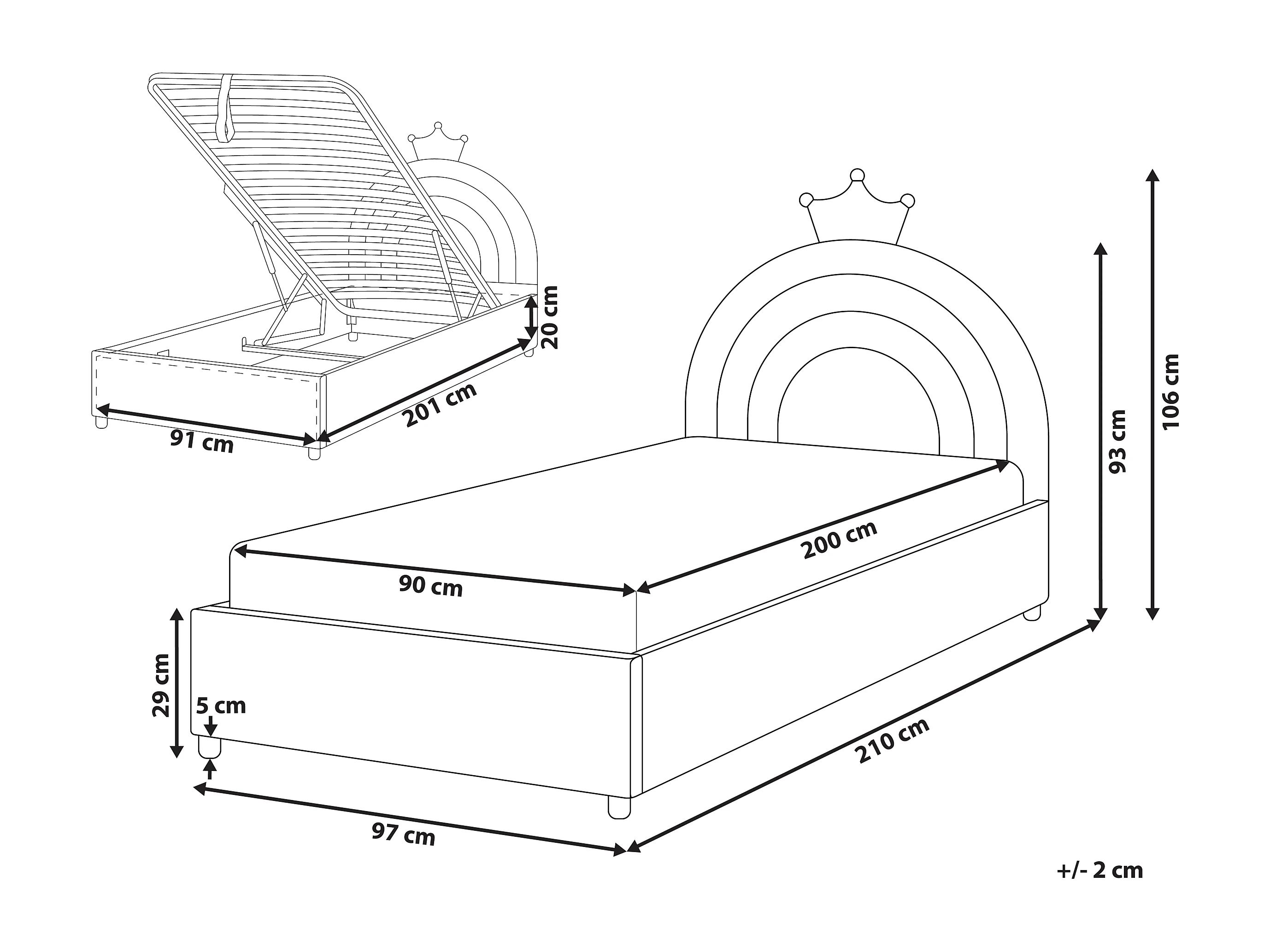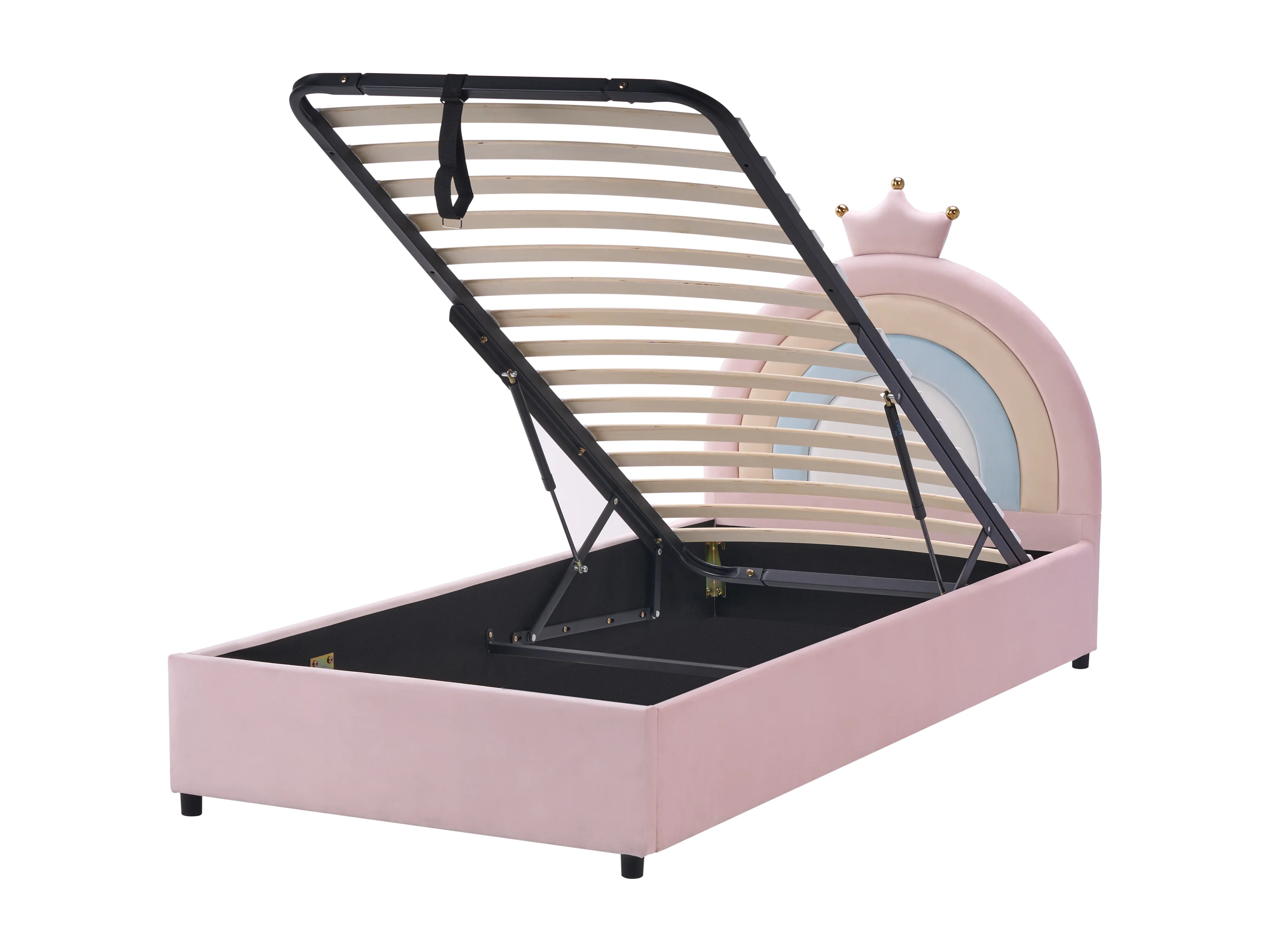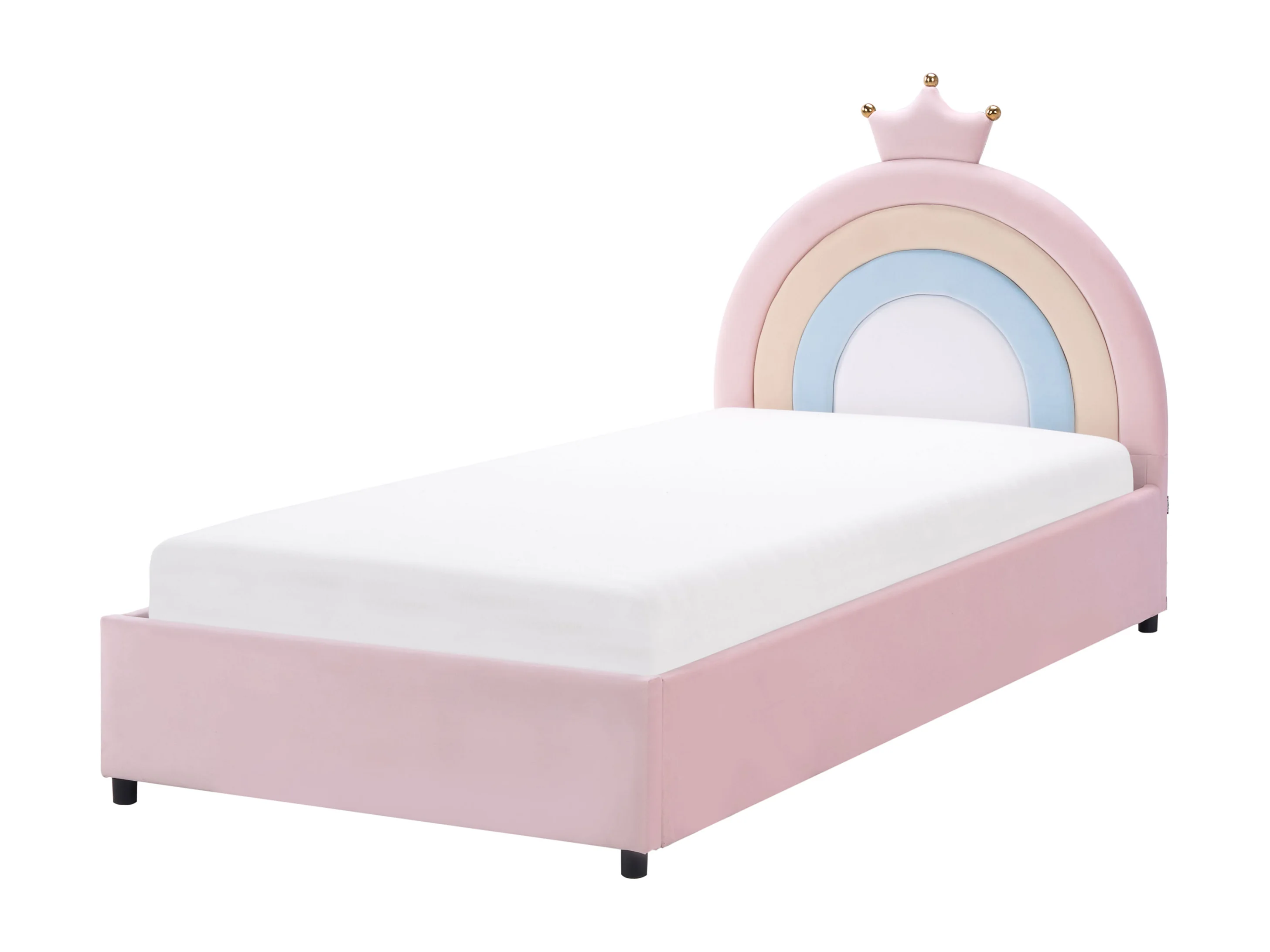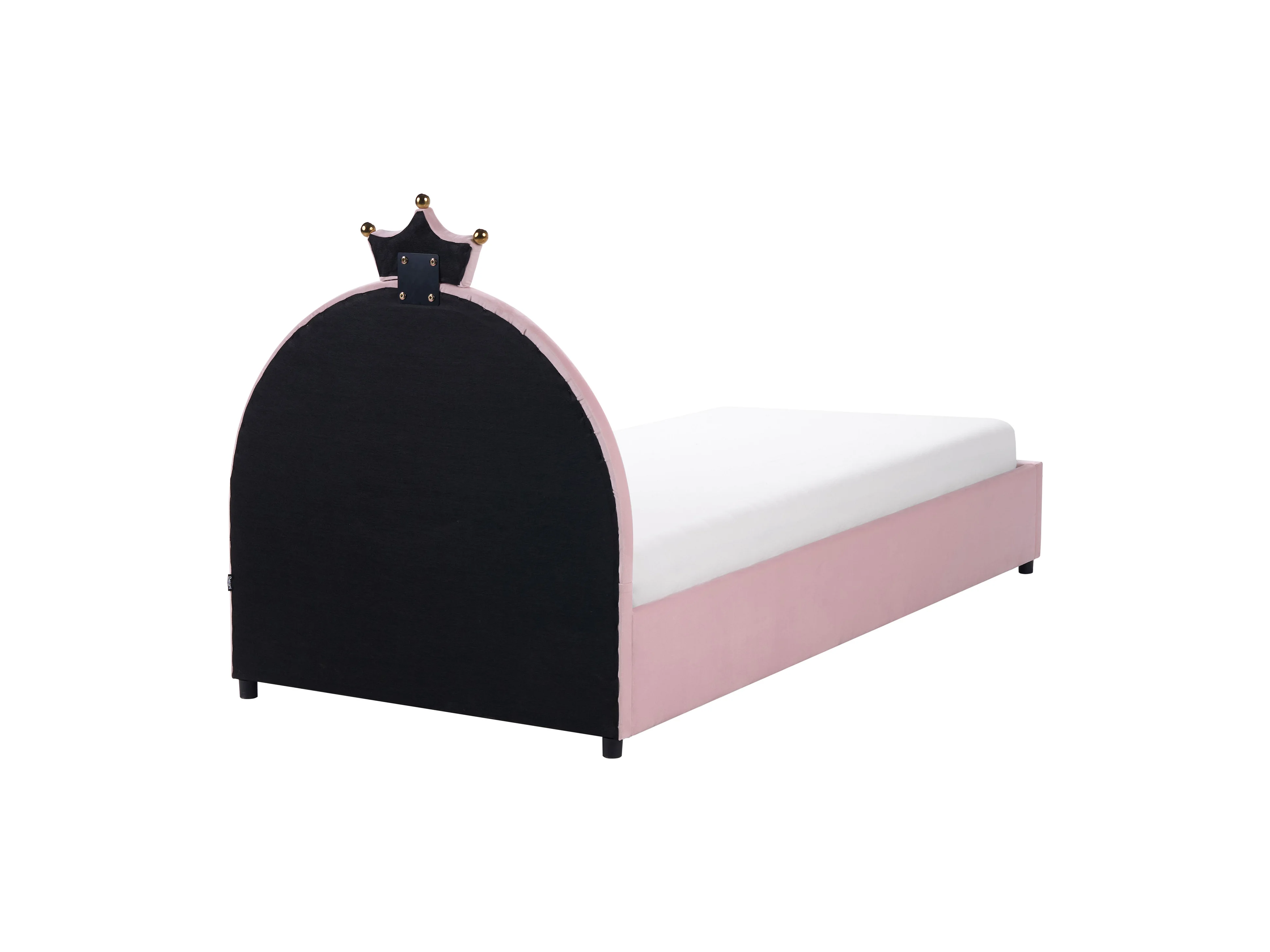 Lit ottoman enfant Couronne Velours GRISETOT 90 x 200 cm avec rangement Rose