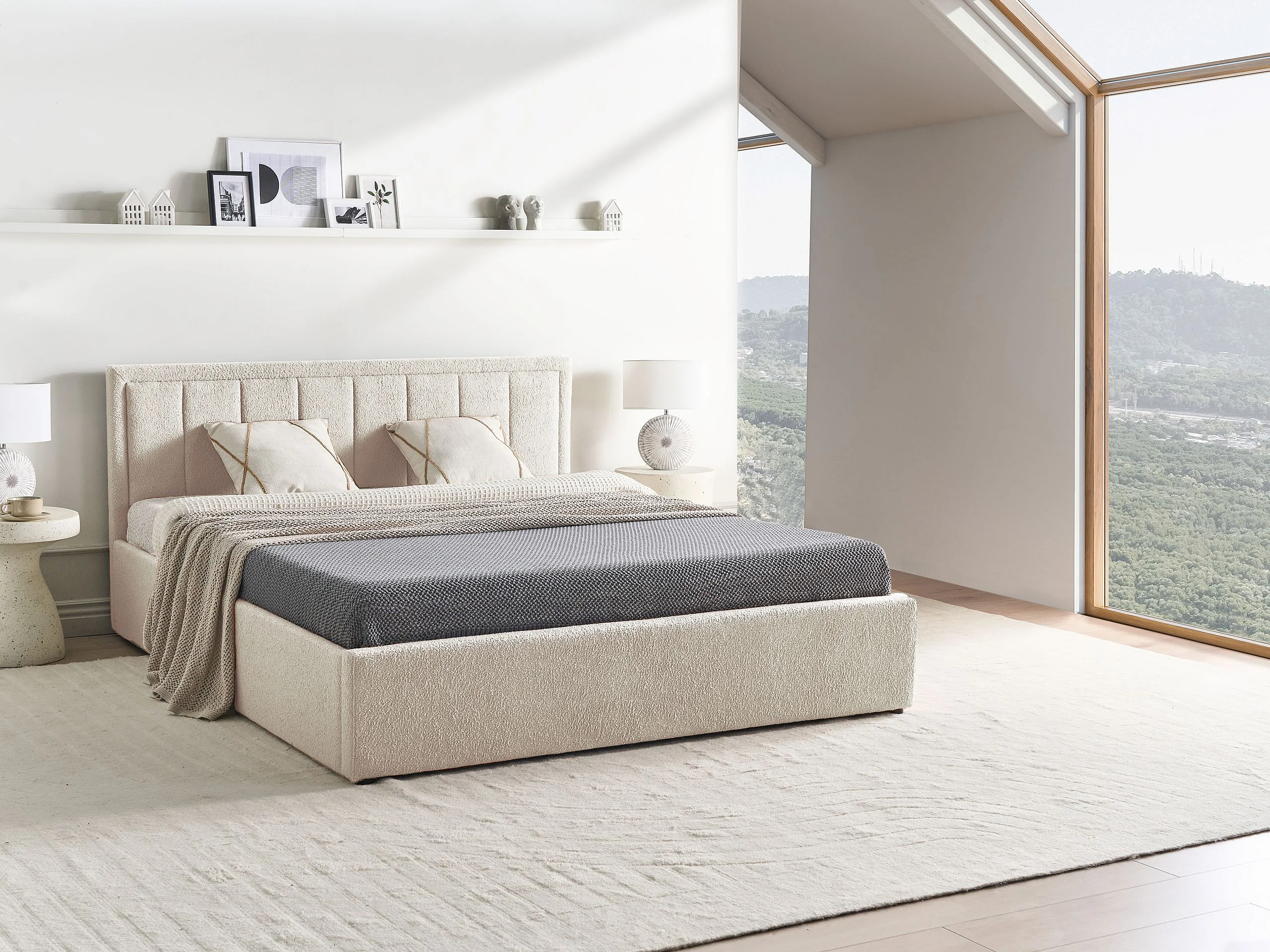 Lit ottoman Bouclé MONTLAUR 160 x 200 cm Beige