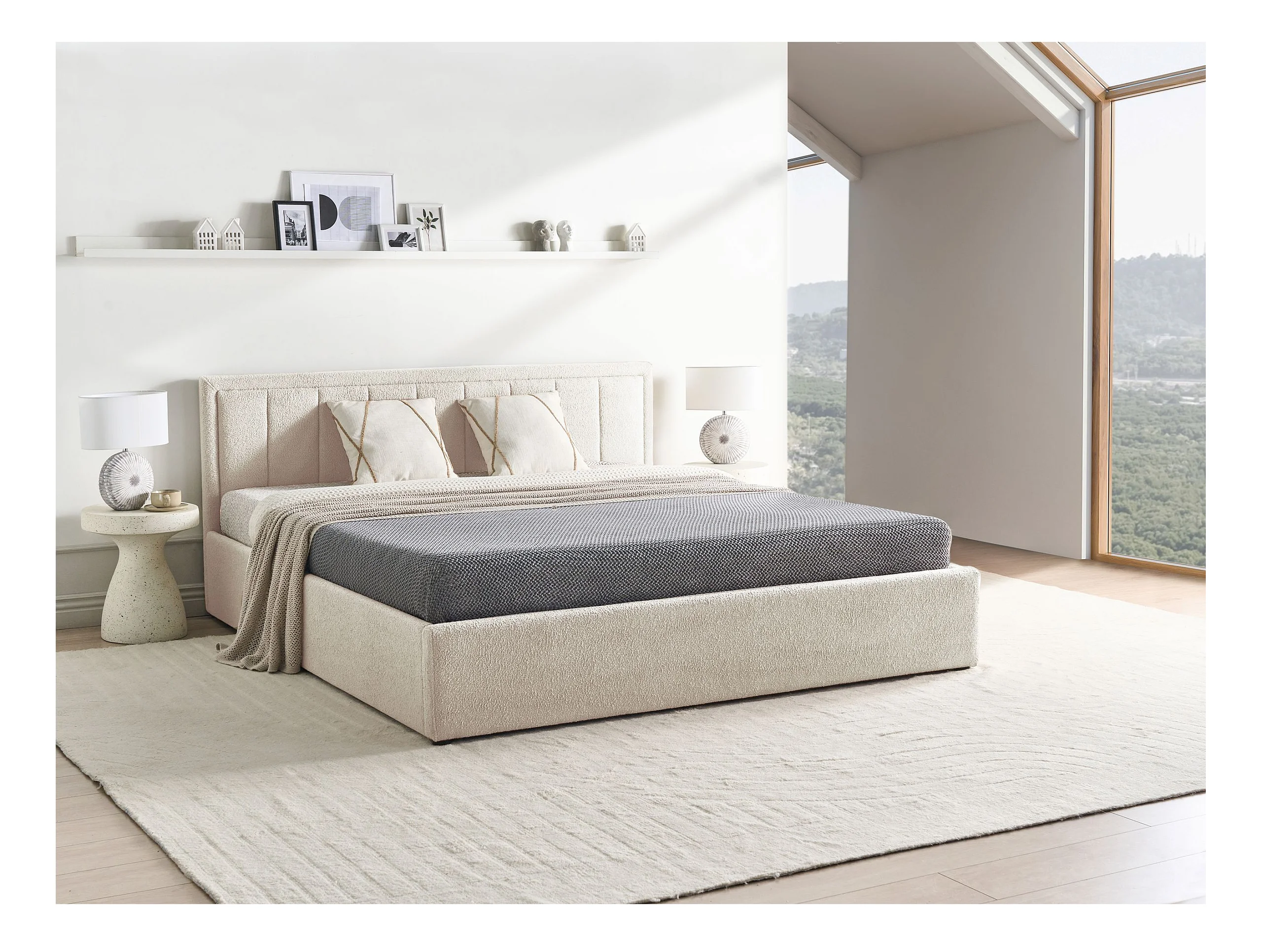 Lit rembourré avec rangement 218 x 238 - en Chenille - beige clair - KEONI