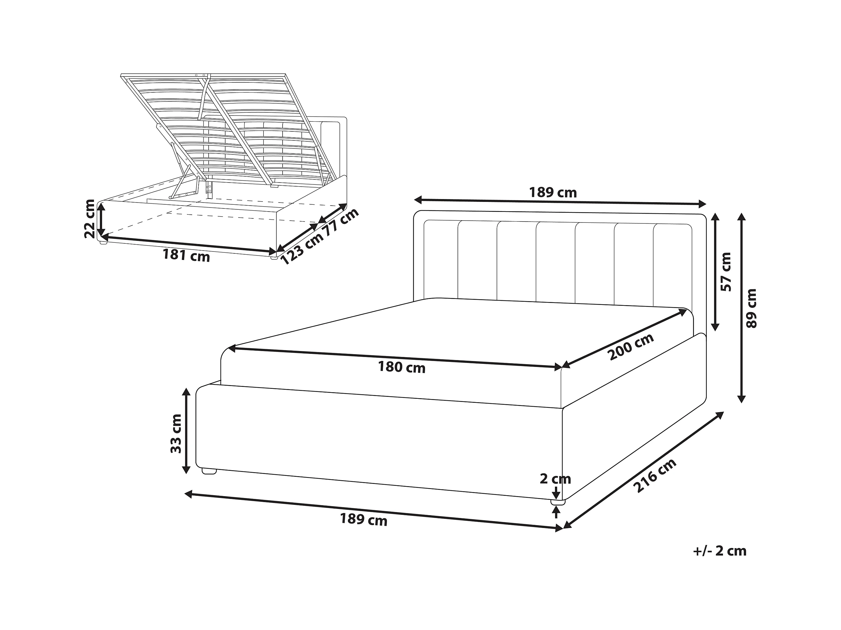Lit coffre 180x200 avec coffre – sommier à lattes – chenille – beige clair – TILVES LOW