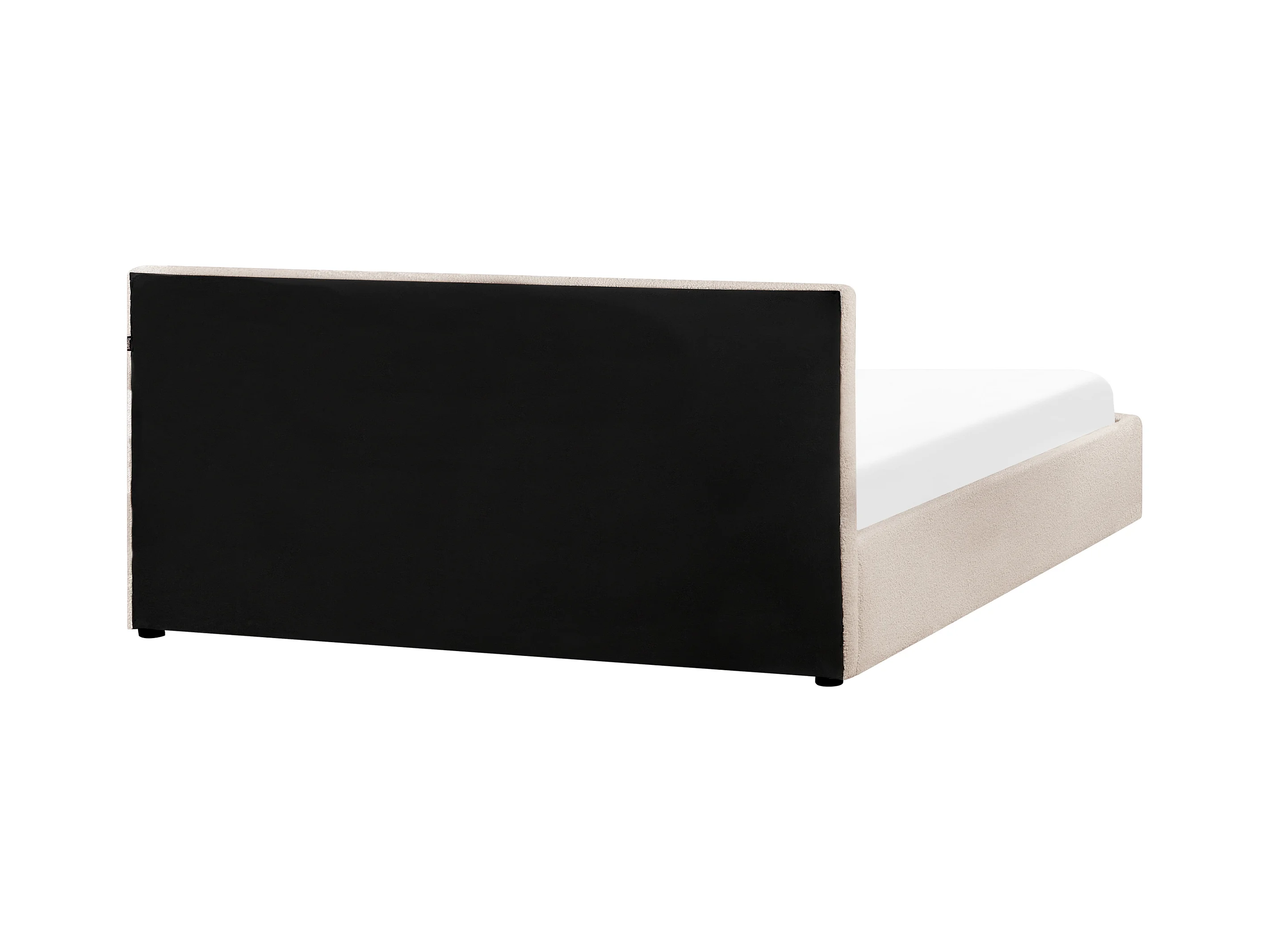Lit coffre avec tête de lit - 180x200 cm - en bouclette beige - SIMSALO