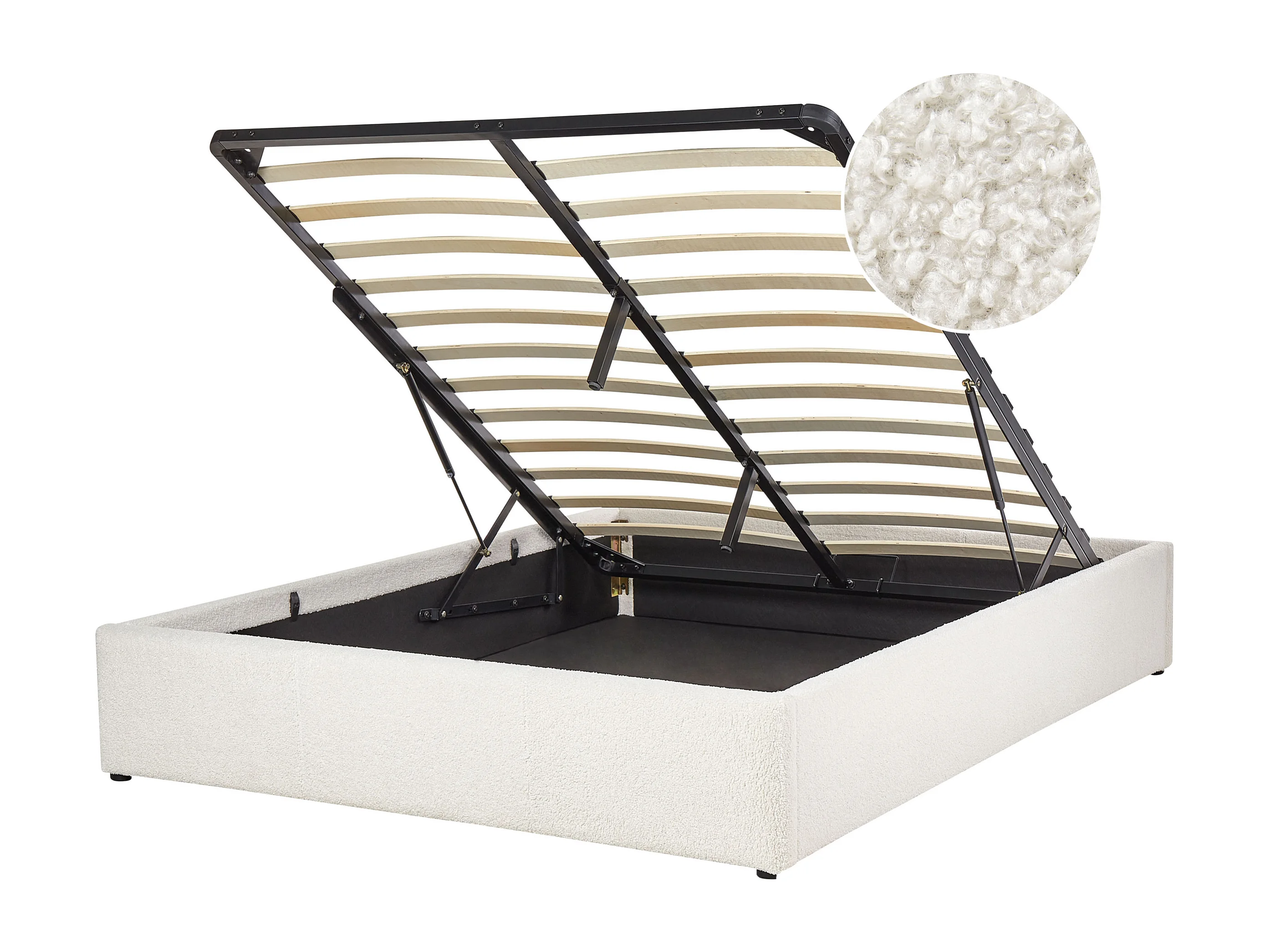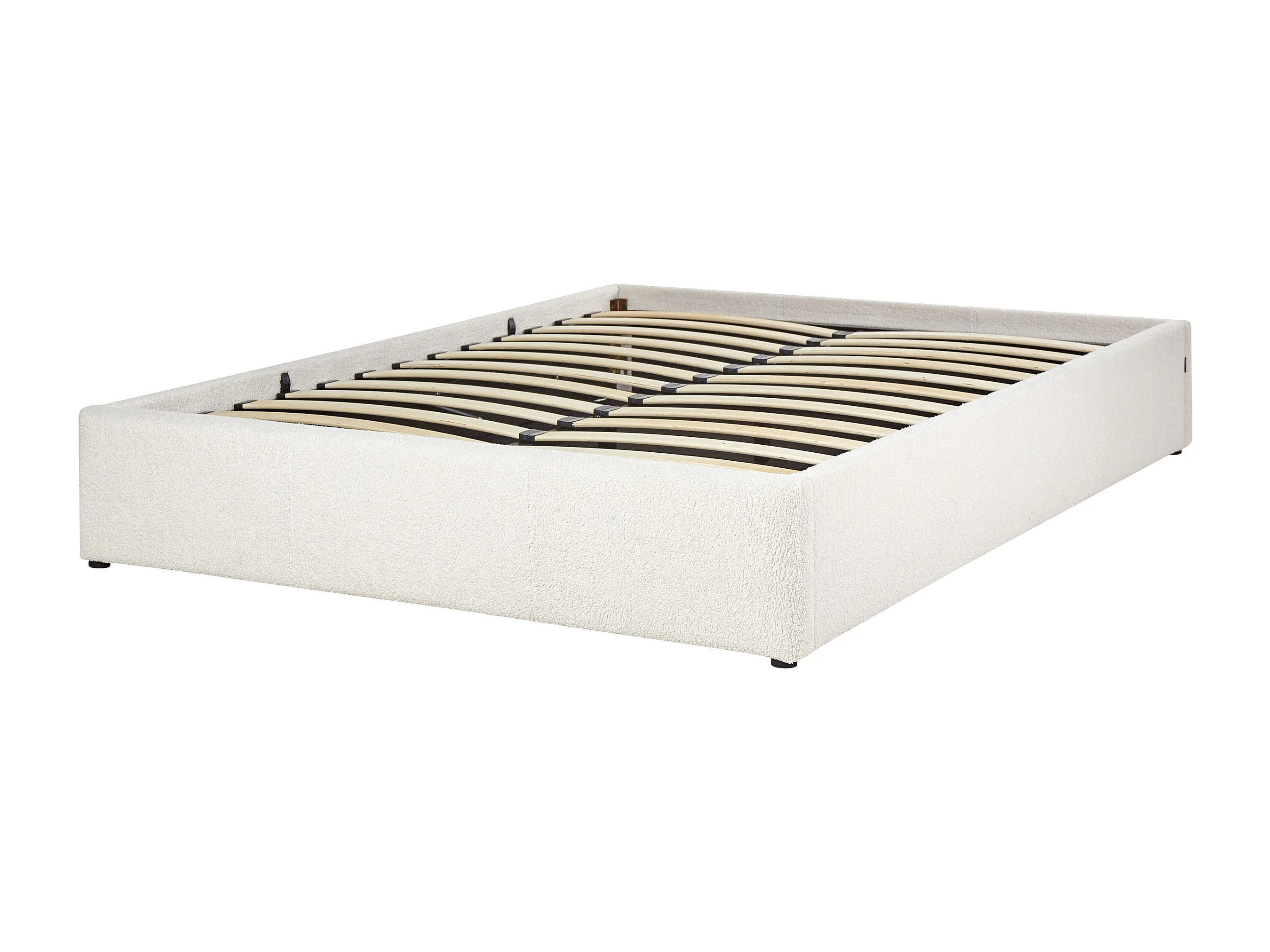 Lit ottoman sans tête de lit Bouclé DINAN 140 x 200 cm Blanc cassé
