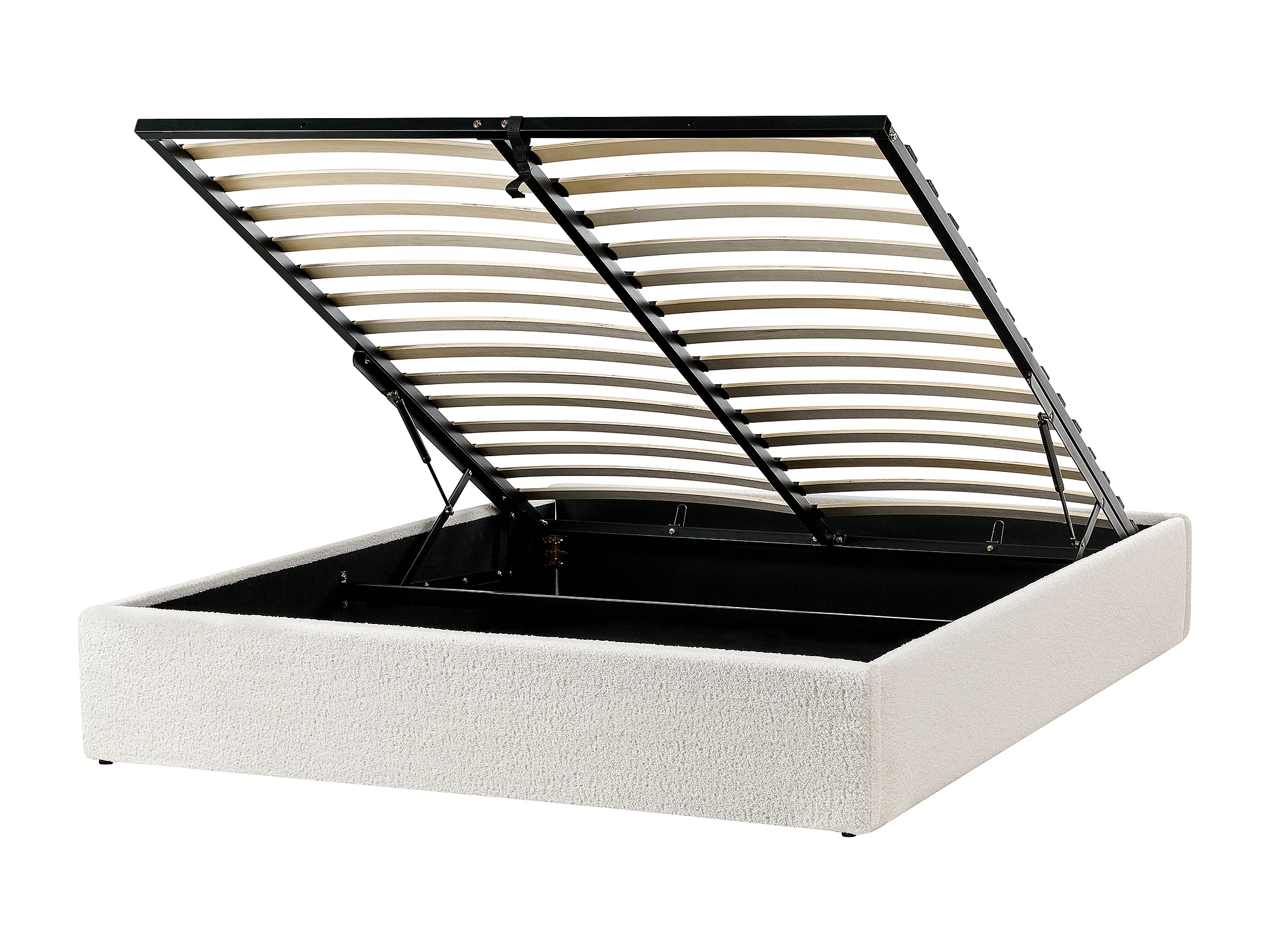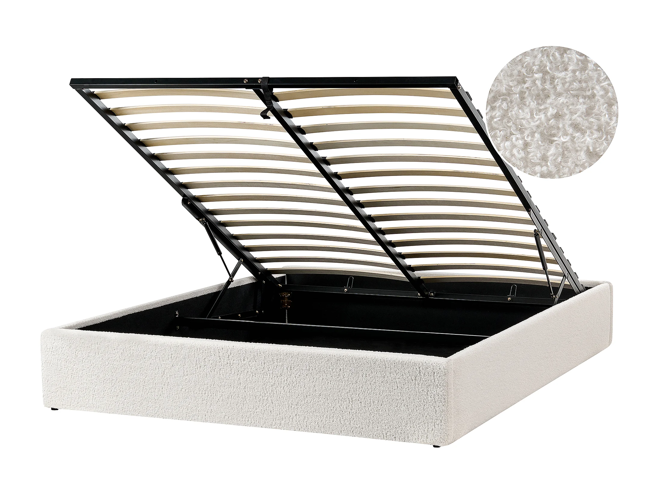 Lit ottoman sans tête de lit Bouclé DINAN 160 x 200 cm Blanc cassé