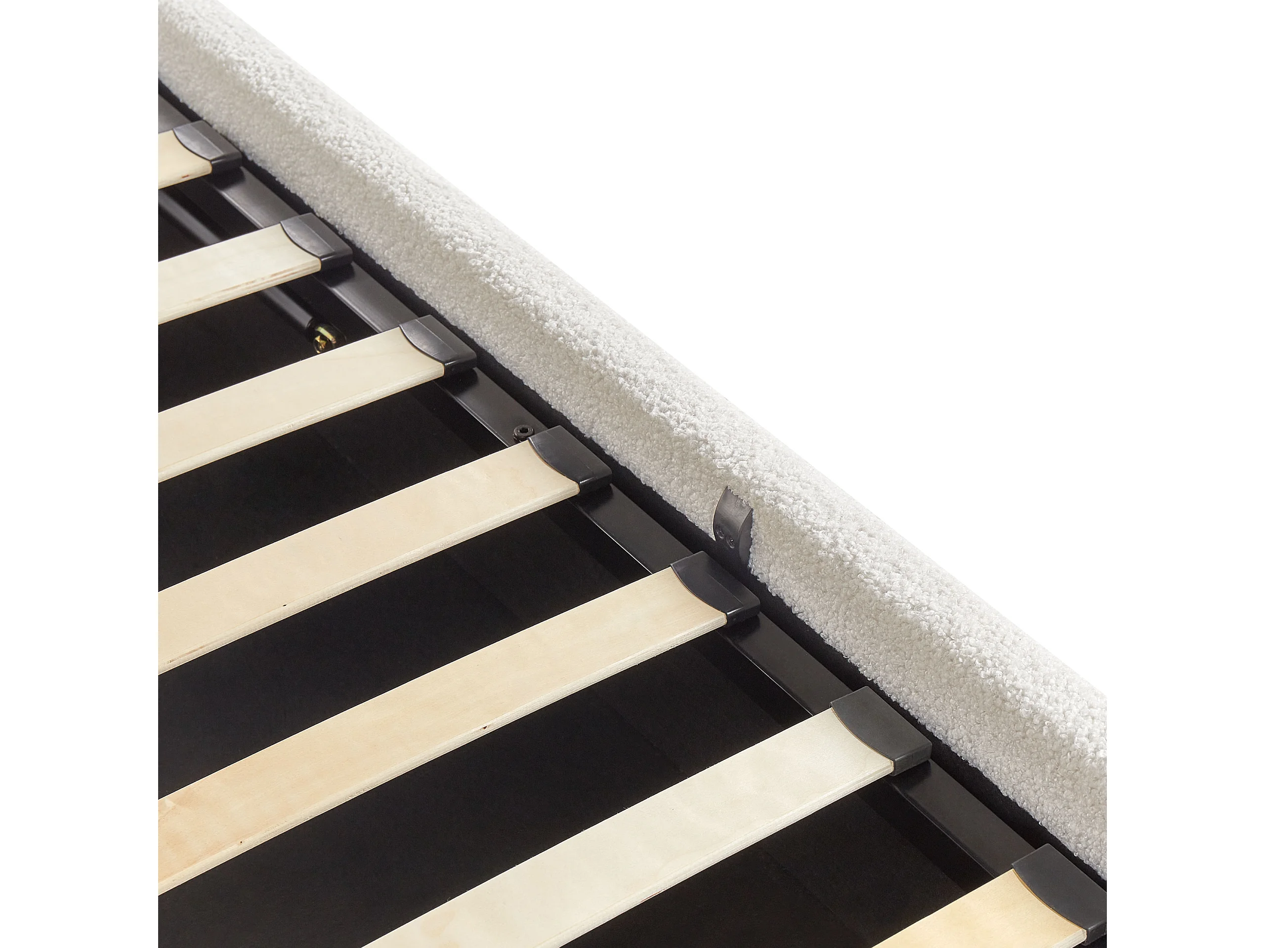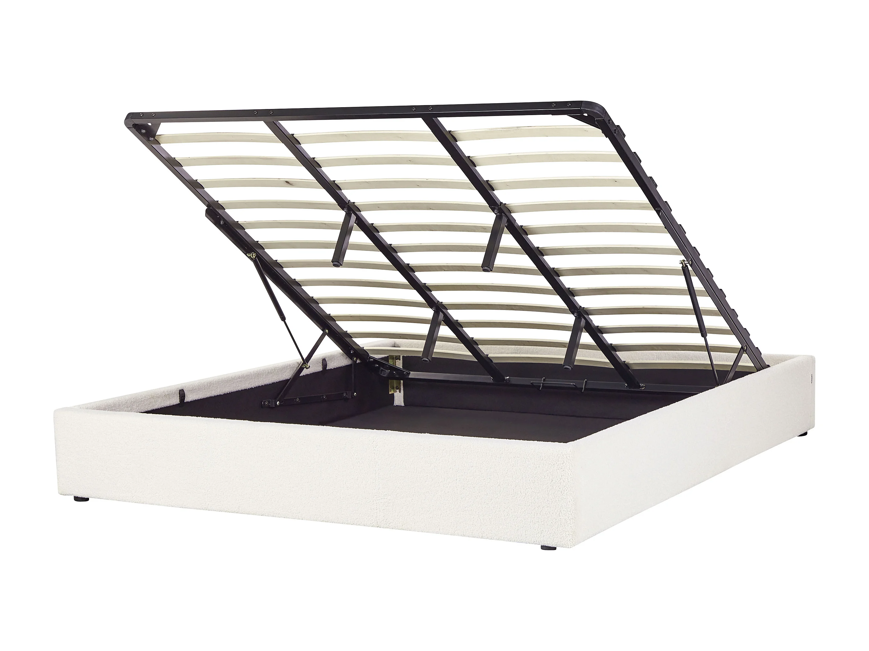 Lit ottoman sans tête de lit Bouclé DINAN 180 x 200 cm Blanc cassé