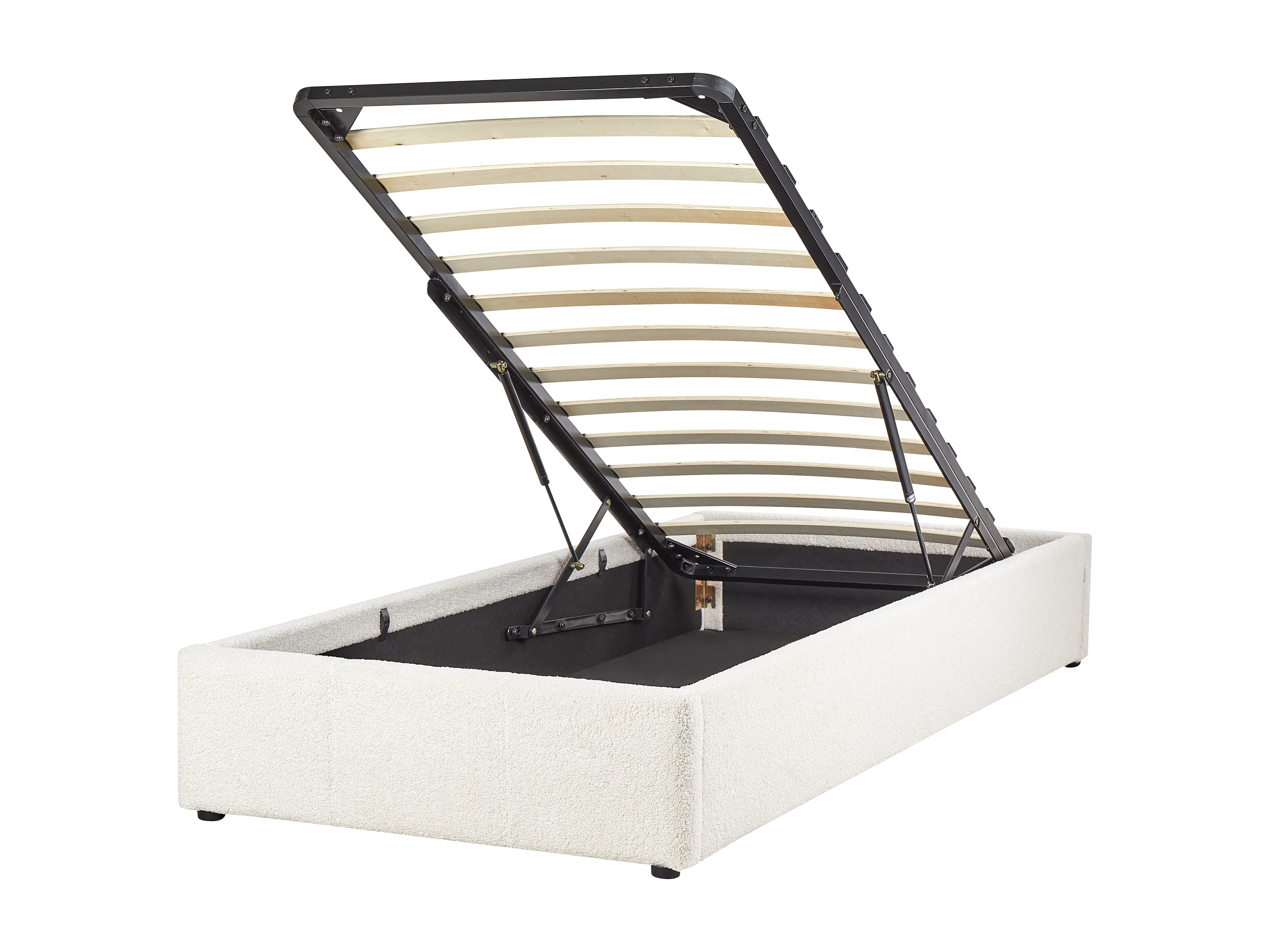 Lit ottoman sans tête de lit Bouclé DINAN 90 x 200 cm Blanc cassé