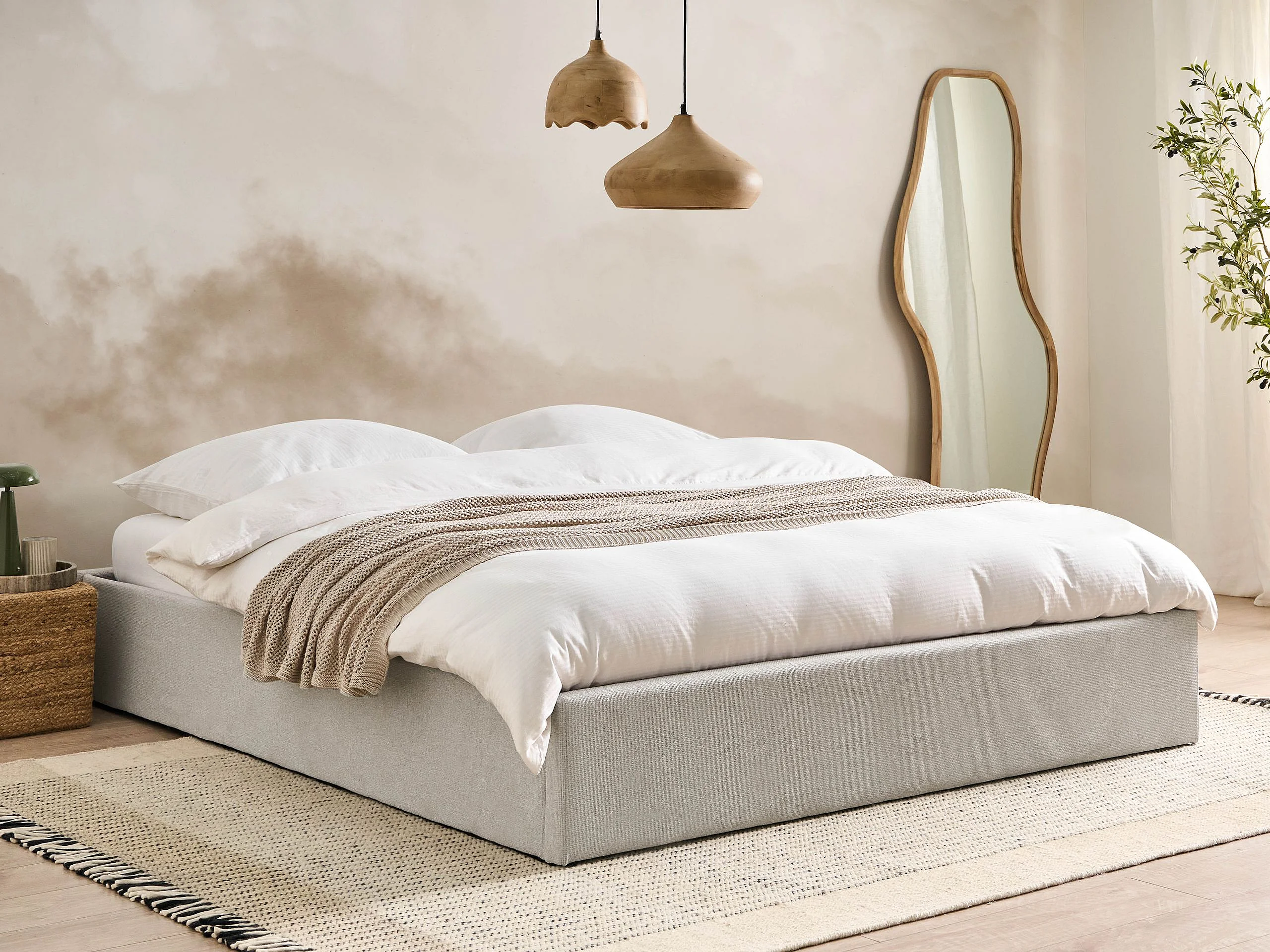 Lit ottoman sans tête de lit Tissu DINAN 180 x 200 cm Gris clair
