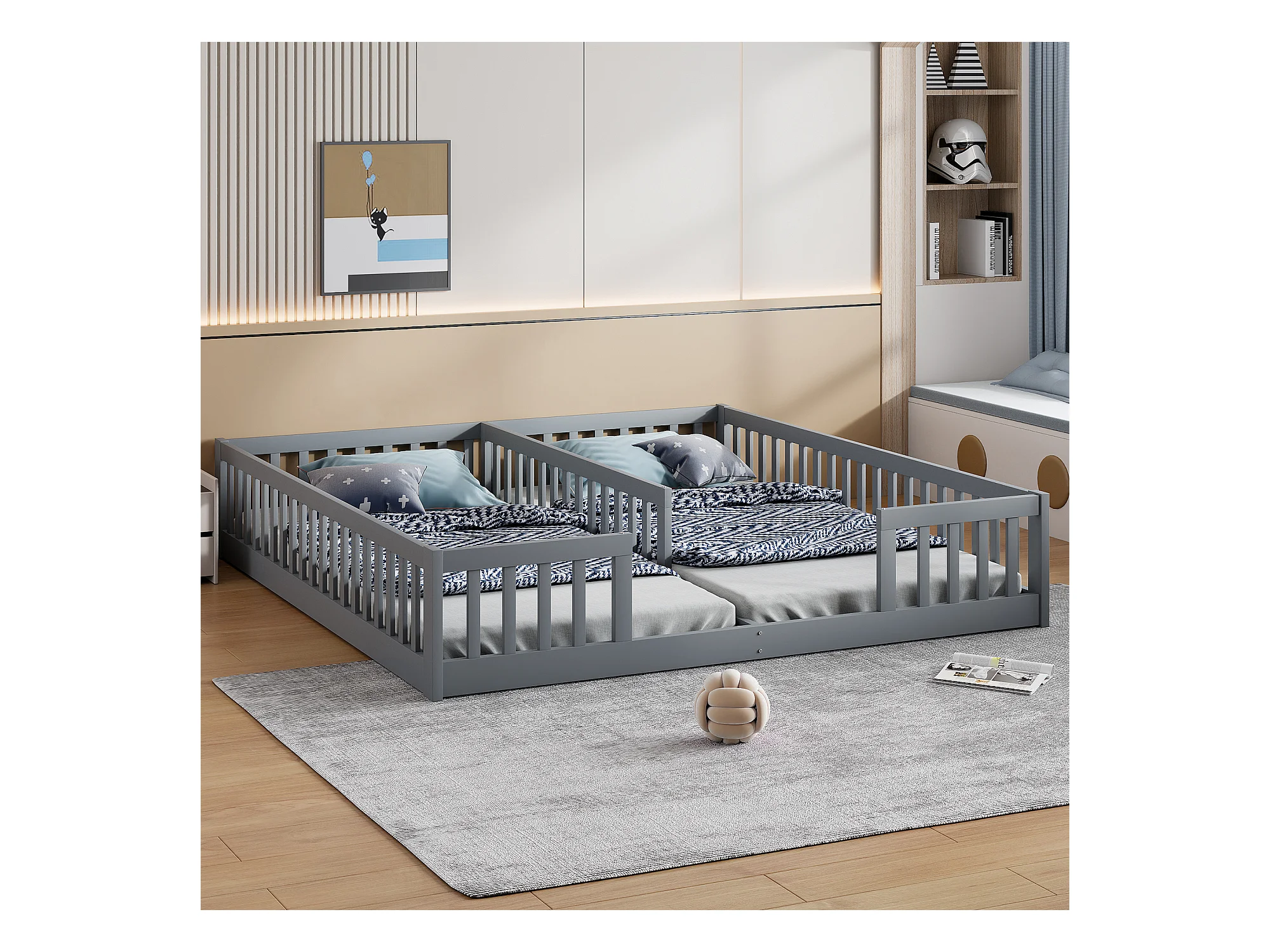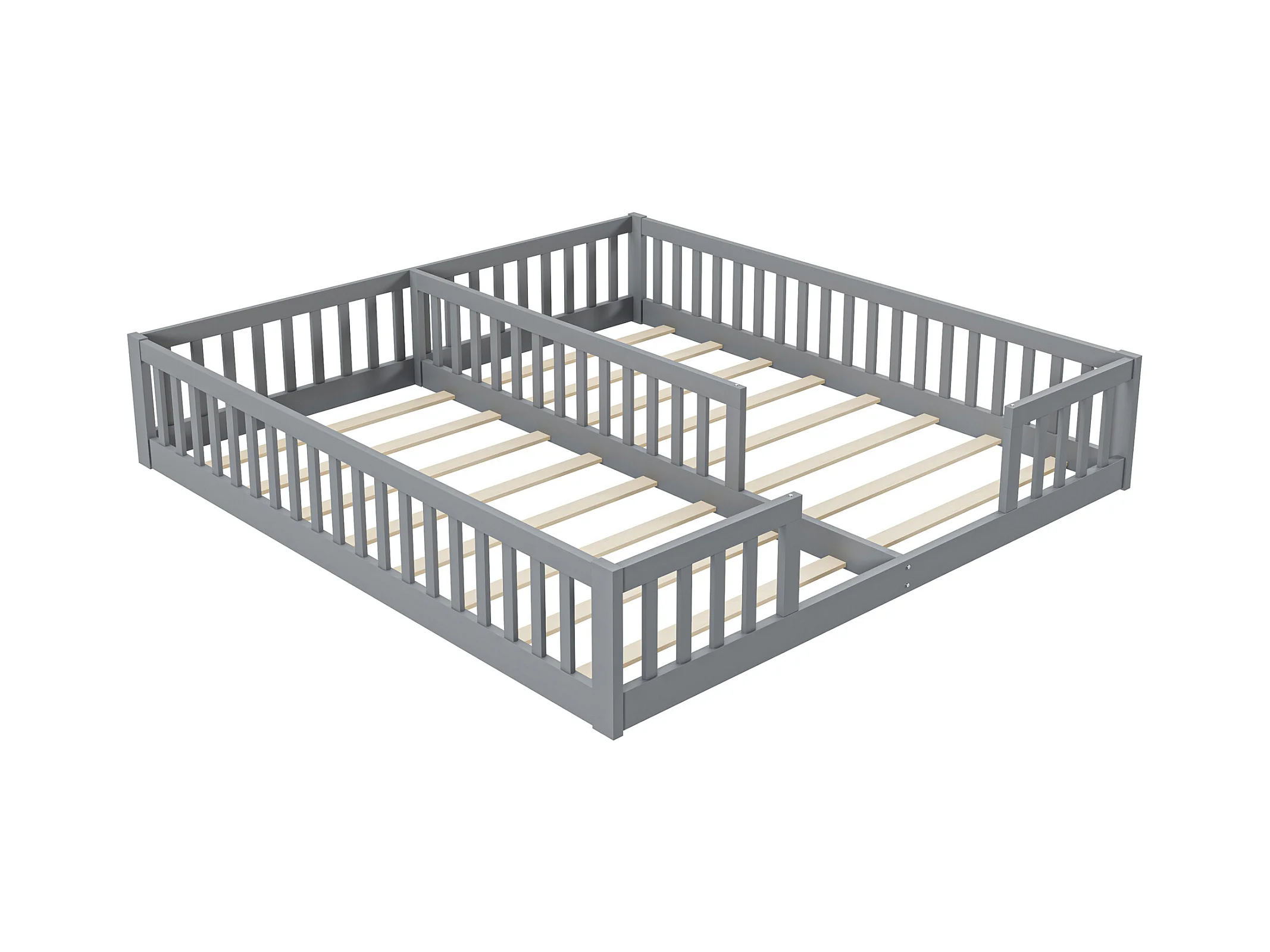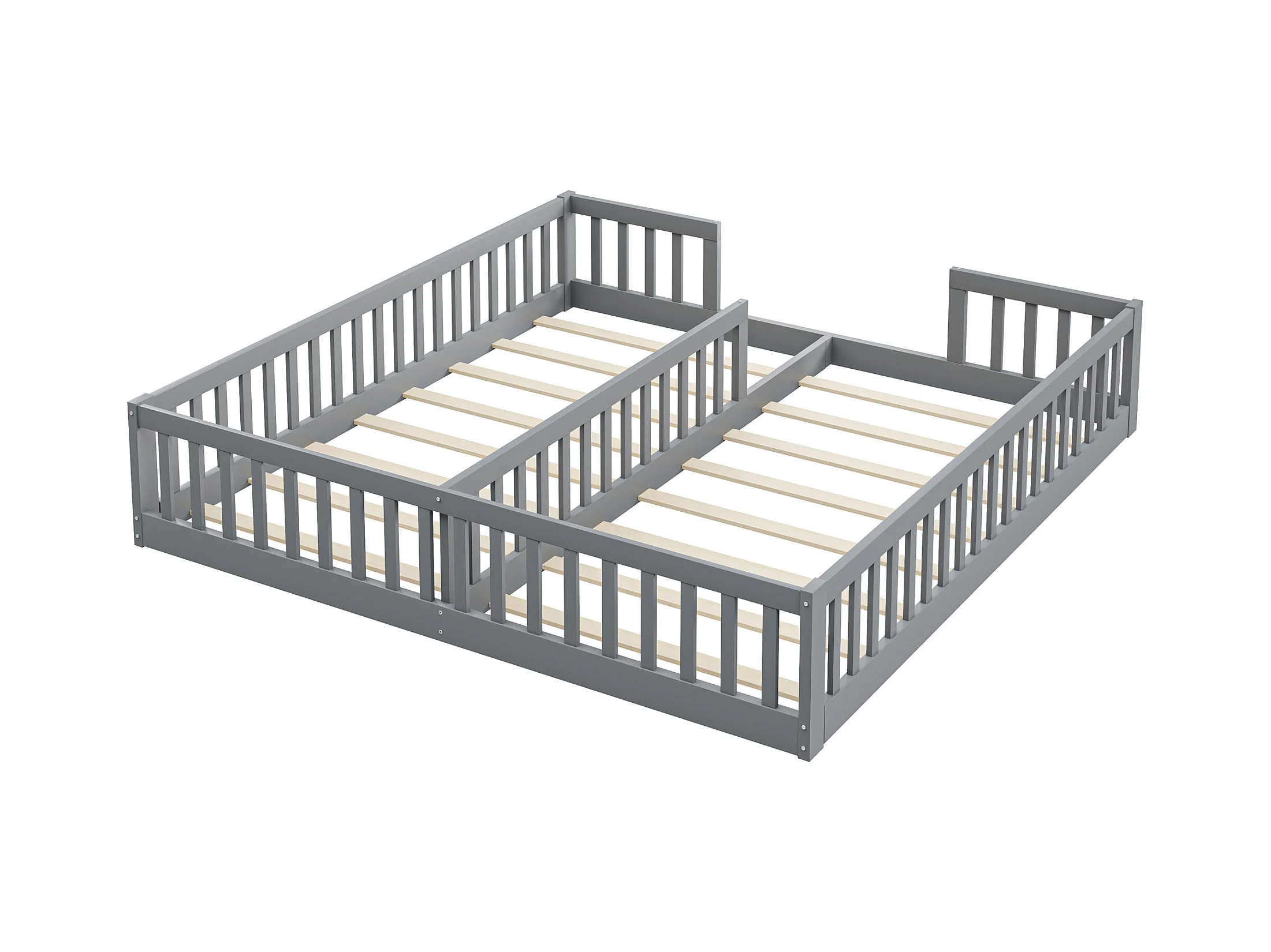 Lit panel 90 x 200 cm, lit enfant avec grille, sans sommier (sans matelas), pour familles avec 2 enfants, pin, style minimaliste, gris (204x187x40 cm)