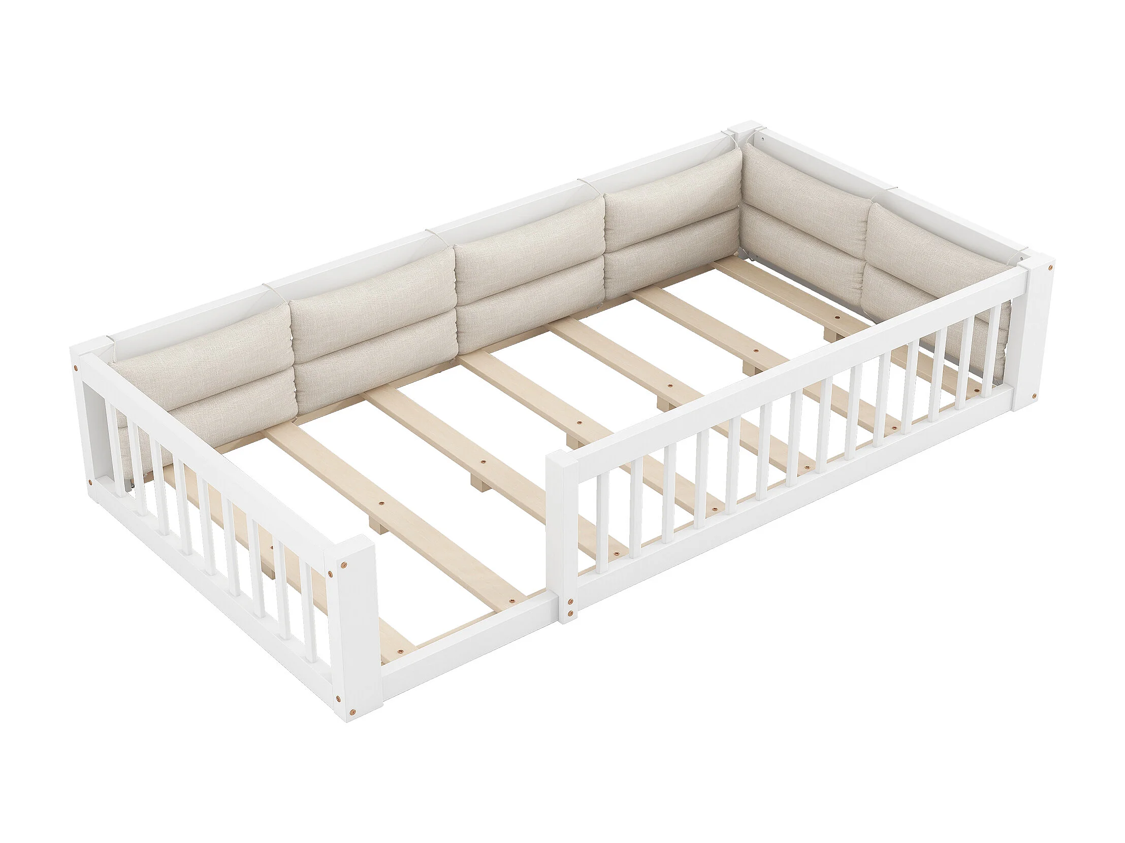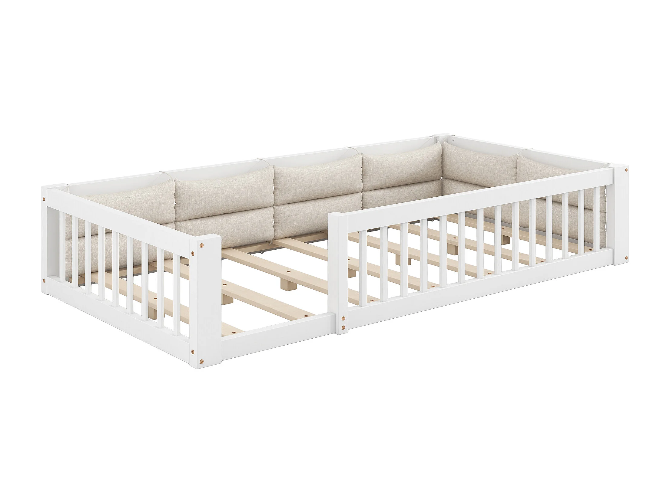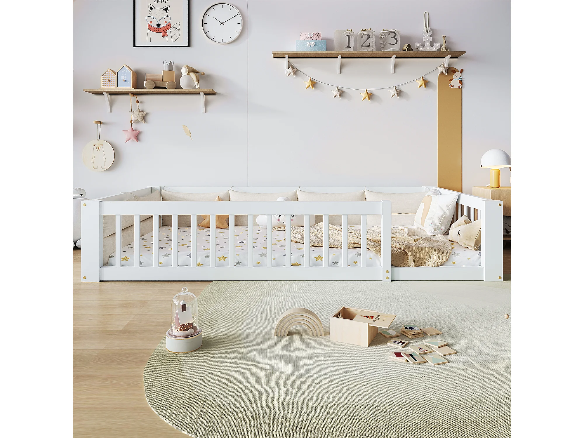 Lit plateforme pour enfant - 90 x 200 cm - avec garde-corps - avec sommier à lattes - bois + MDF - blanc