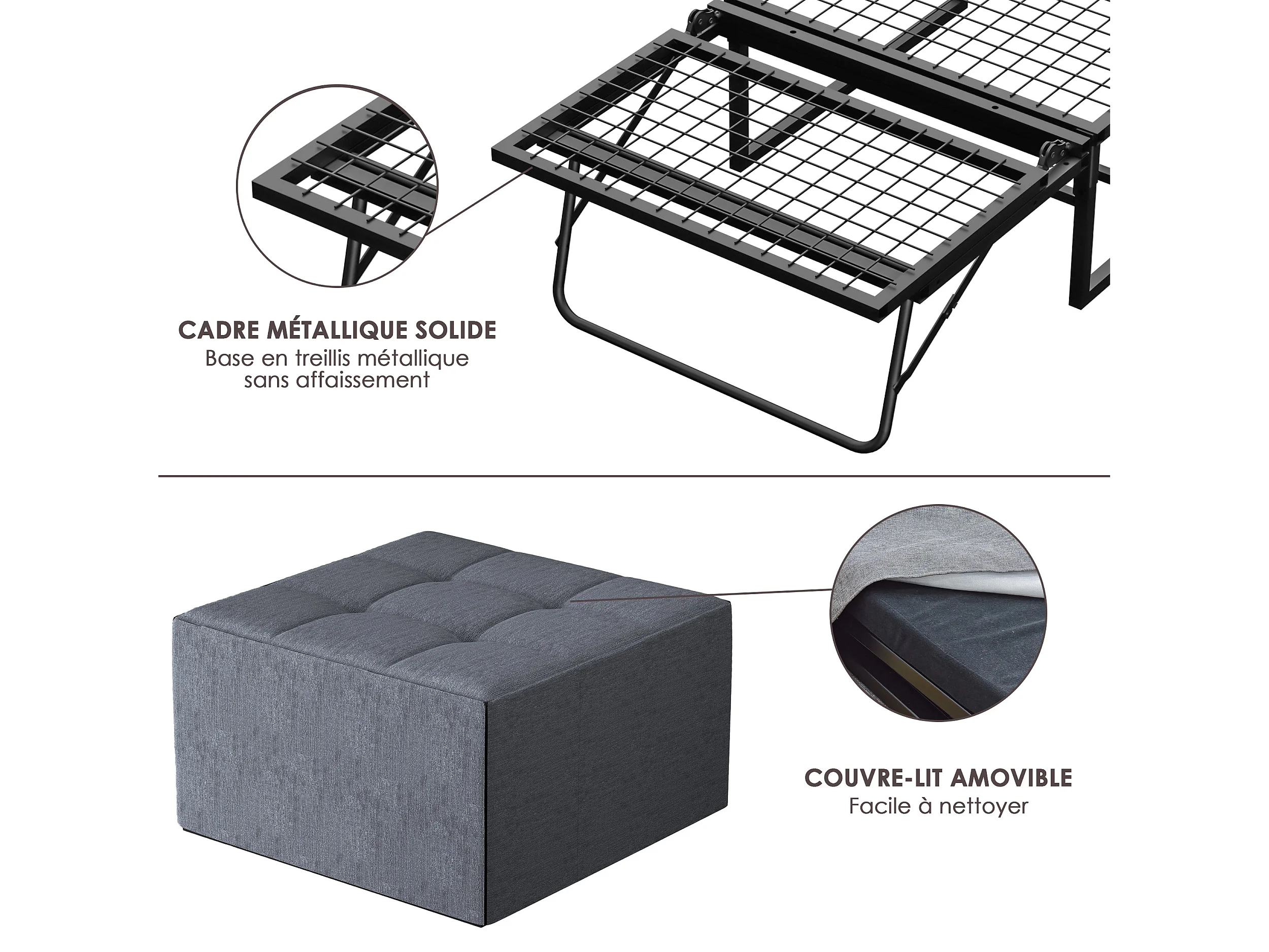 Lit Pliant 76x197 CM, Canapé-lit 1 Personne pour Adult,Dossier réglable sur 5 Positions, Aucun Assemblage requis