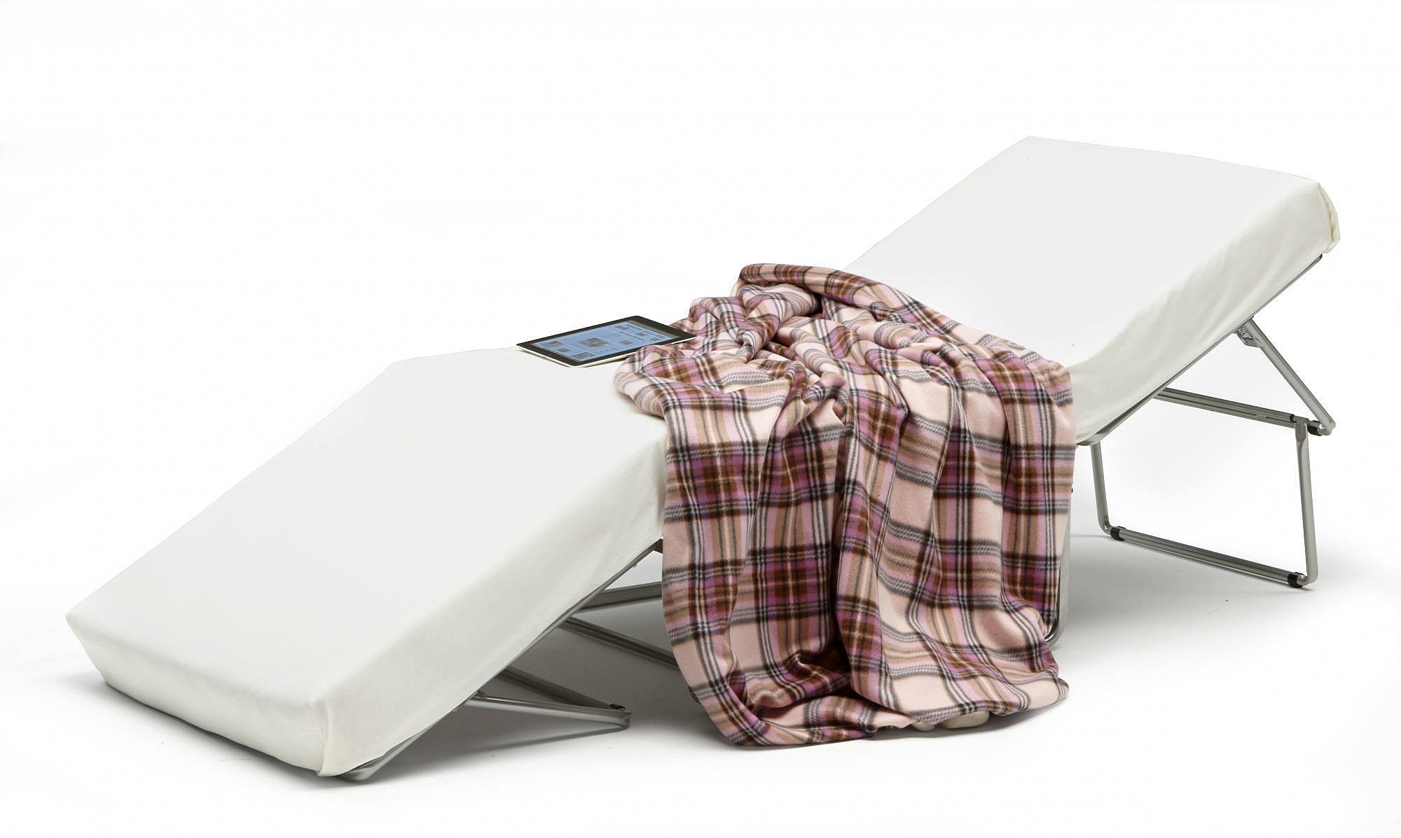 Lit pliant Dabay, Pouf transformable en lit simple, Pouf de salon en tissu, 100% Made in Italy, 80x80h45 cm, Crème