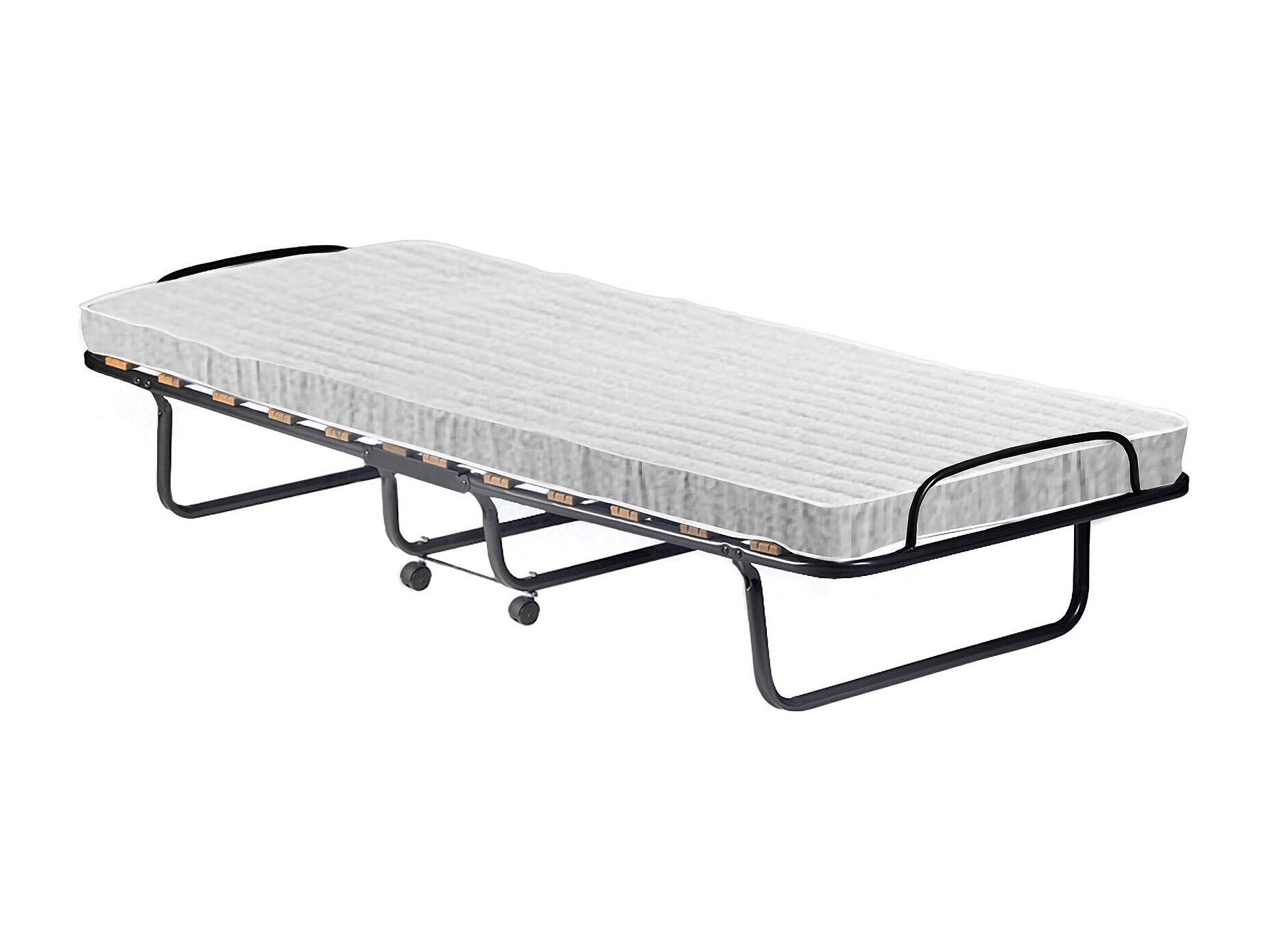 Lit Pliant (Fabriqué en Italie) 1 Personne Adulte 80 x 190 cm, avec Matelas Orthopédique en Mémoire 10 cm, Charge 120 kg, Lit d’Appoint Pliable à 4 roulettes et Sommier à 15 Lattes de Bois pour invités, Beige