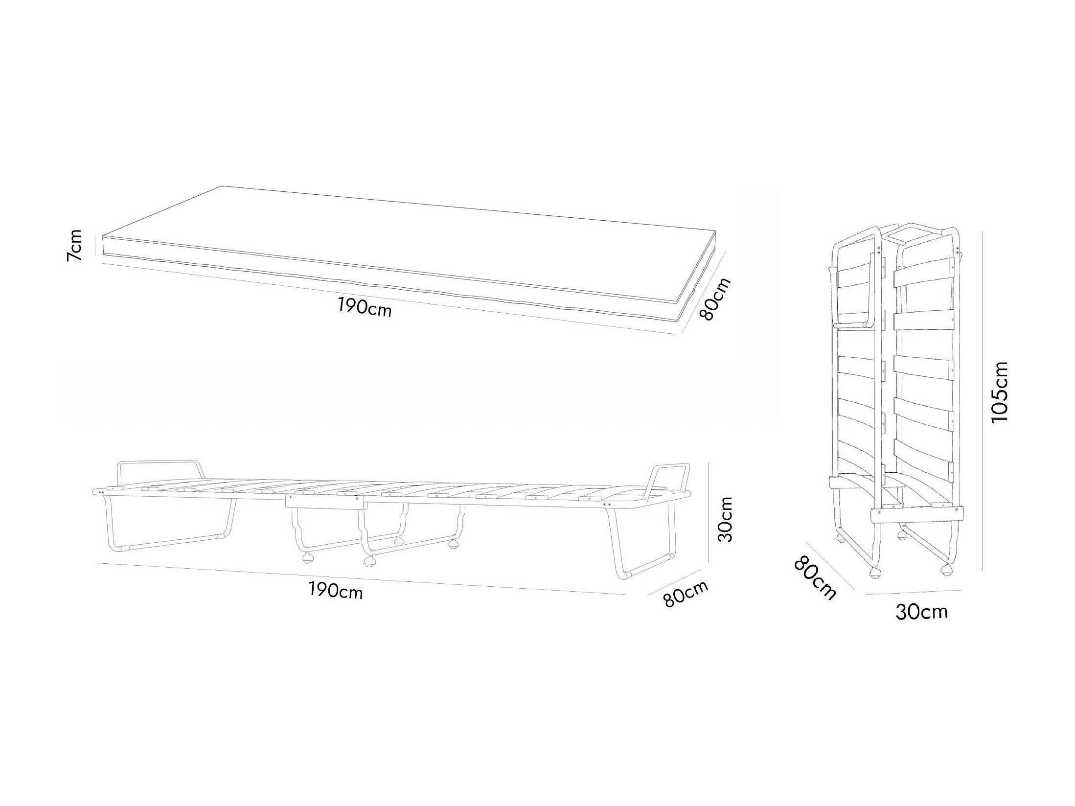 Lit pliant Daaronso, Lit de camp à 12 lattes, Matelas inclus, Lit bébé peu encombrant, 100% Made in Italy, 80x190h37 cm, Housse de protection sur demande