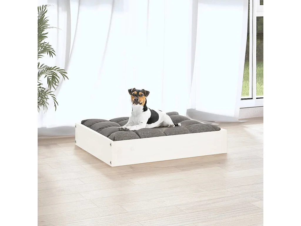 Lit pour chien blanc 95,5x65,5x28 cm bois de pin solide
