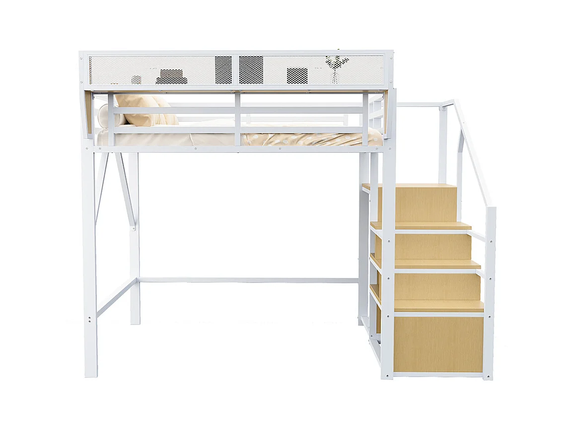 Lit pour enfant, lit mezzanine 140x200, avec échelle de sécurité, blanc