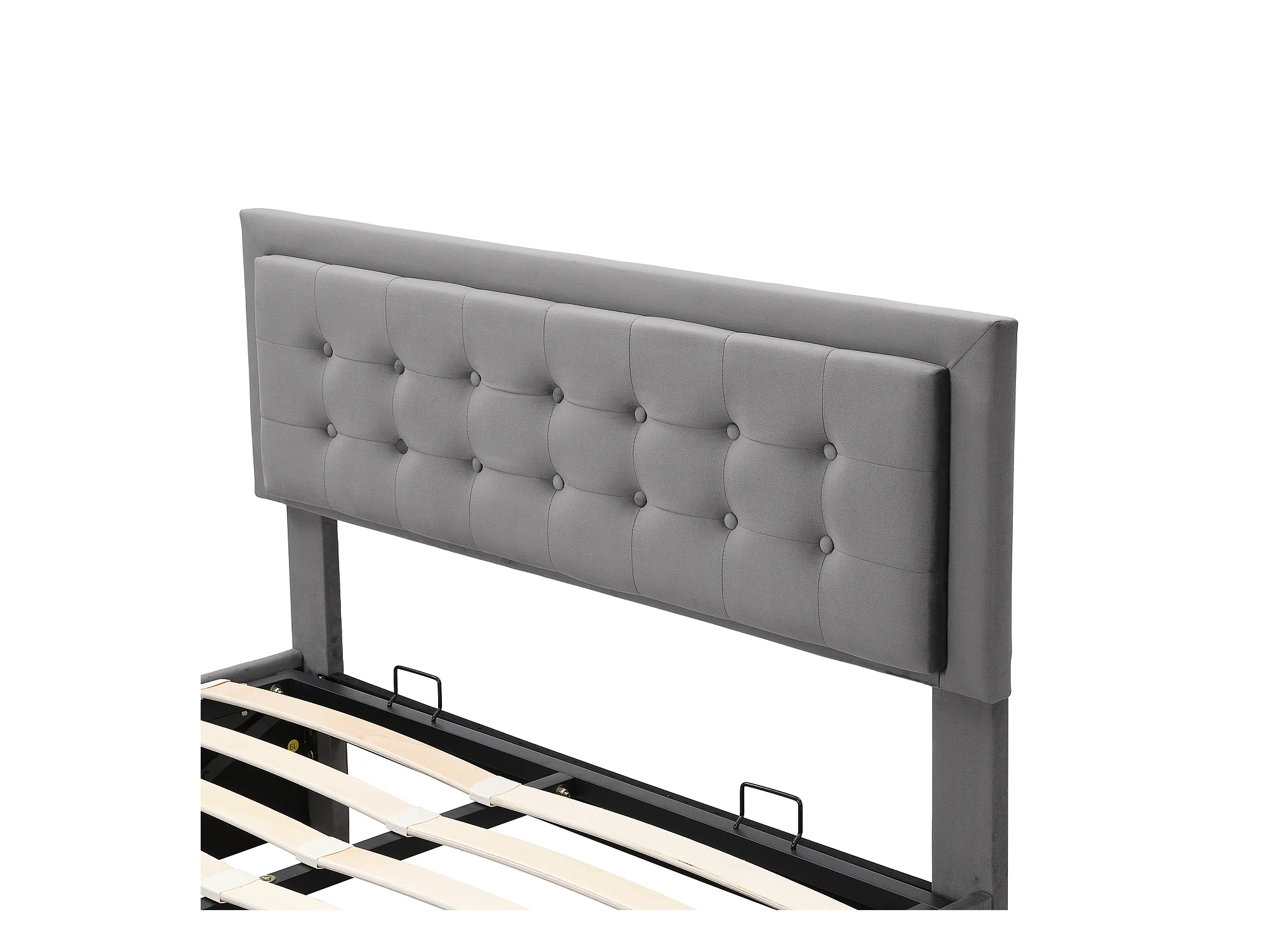 Lit coffre en velours avec sommier à lattes + tête de lit réglable - 140x190cm - Gris