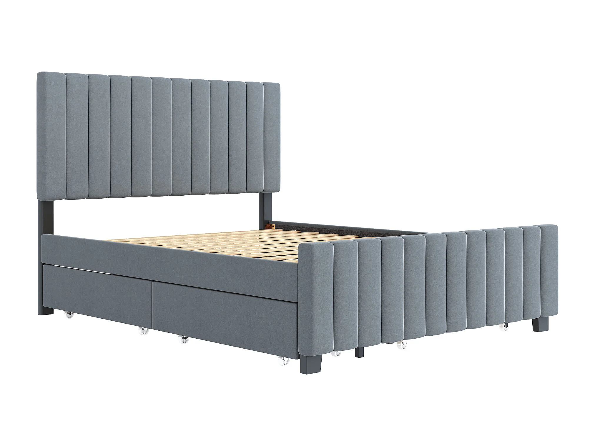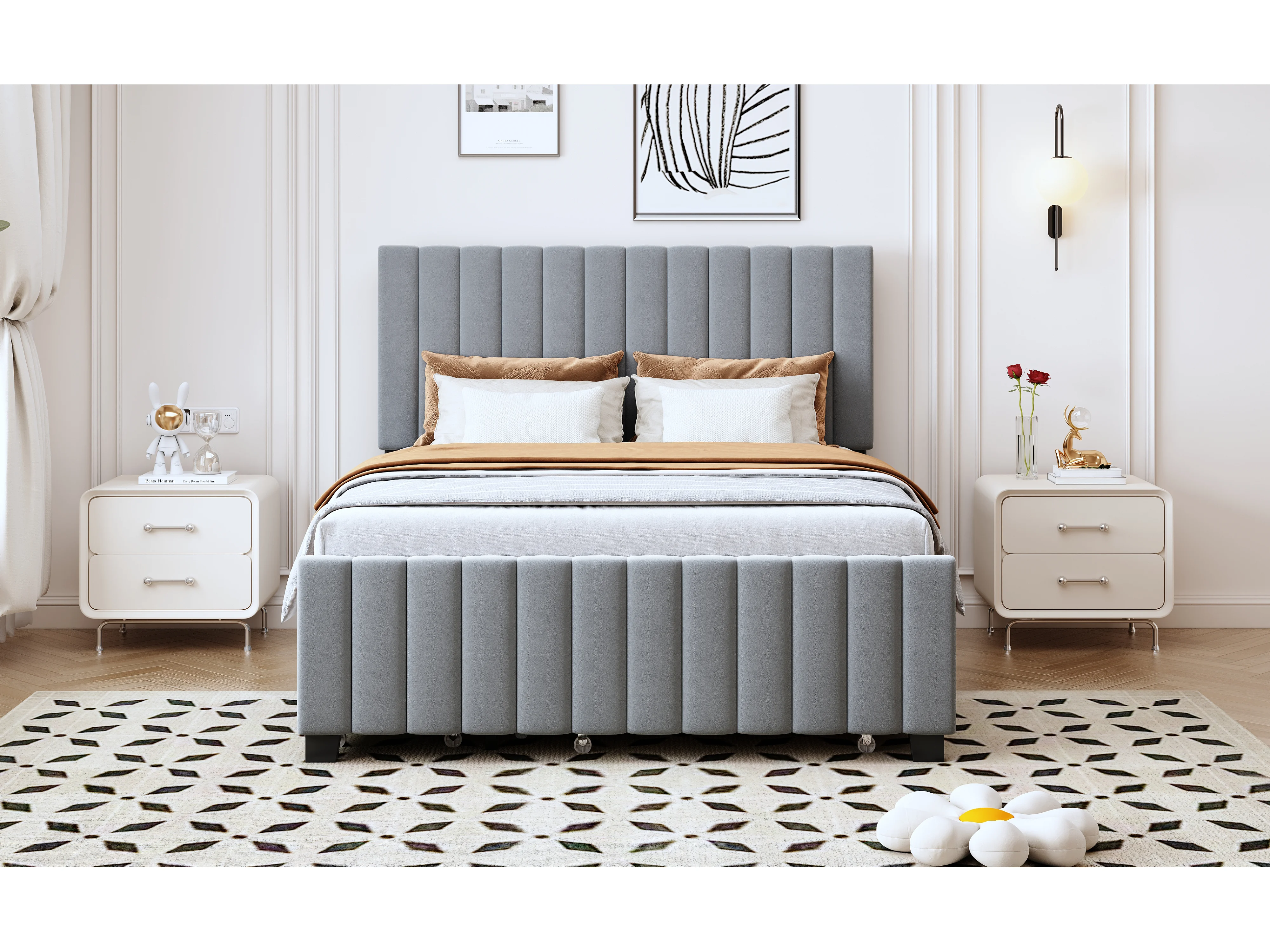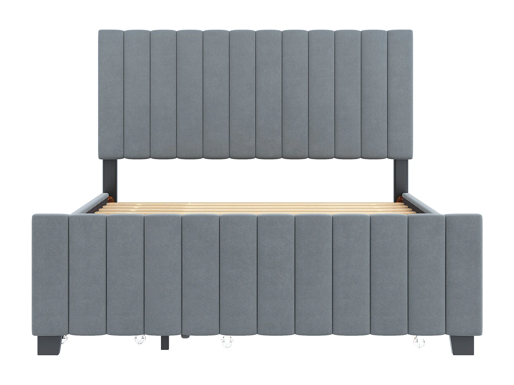 Lit rembourré 140 x 190 cm avec lit escamotable, 2 tiroirs de rangement, tissu en velours doux, lit pour enfants (sans matelas) (201.5x149.5x116.5 cm)