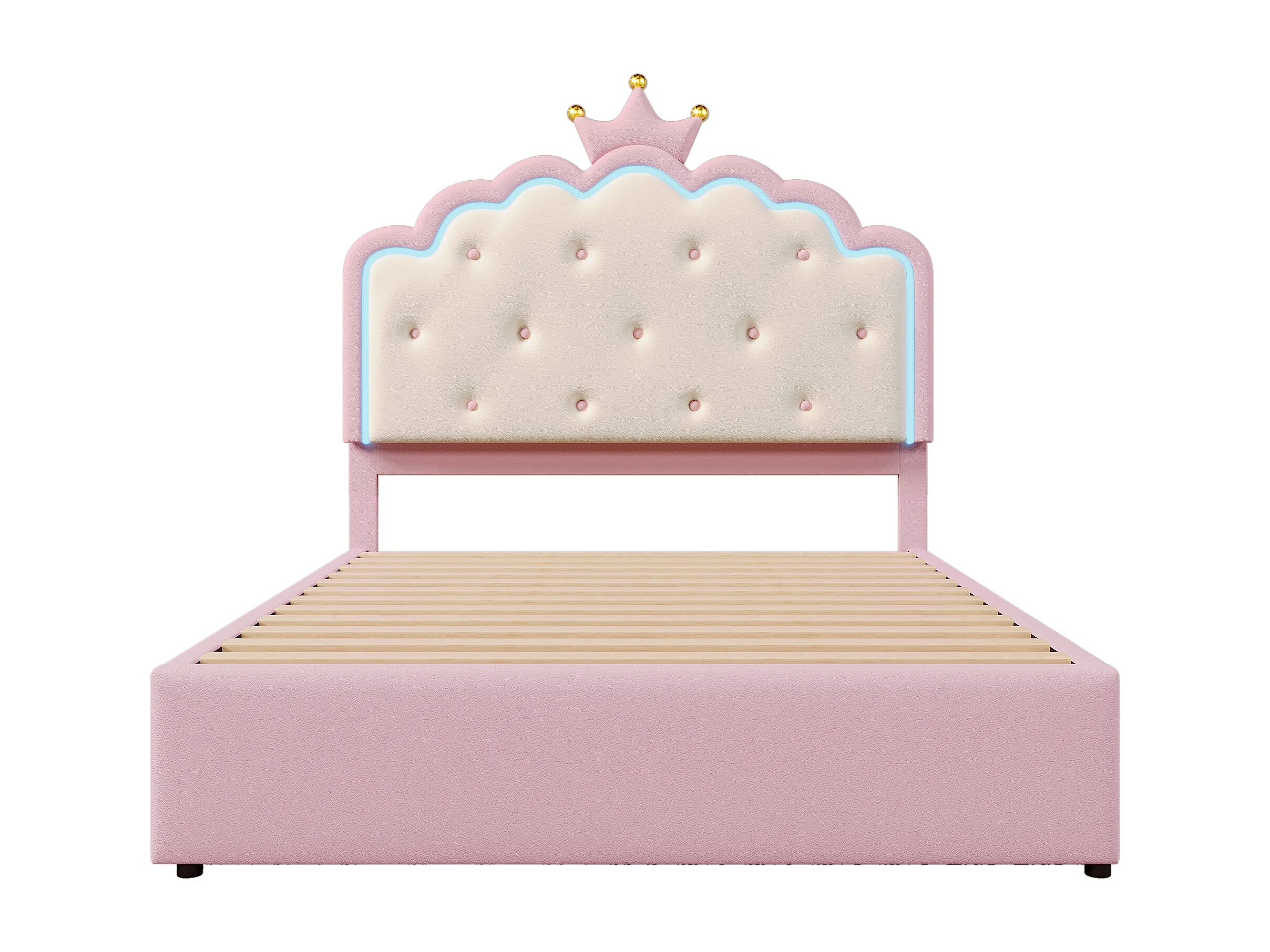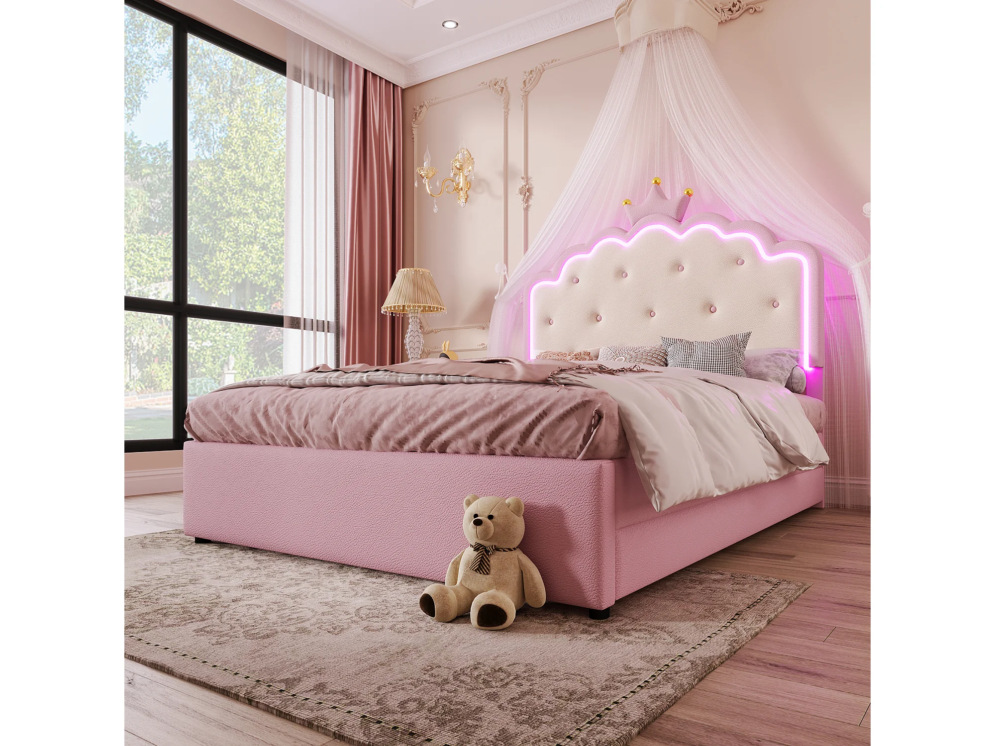 Lit d'enfant 140 x 200 cm, avec lumière d'ambiance, forme princesse, lit pliable, 2 tiroirs, rose