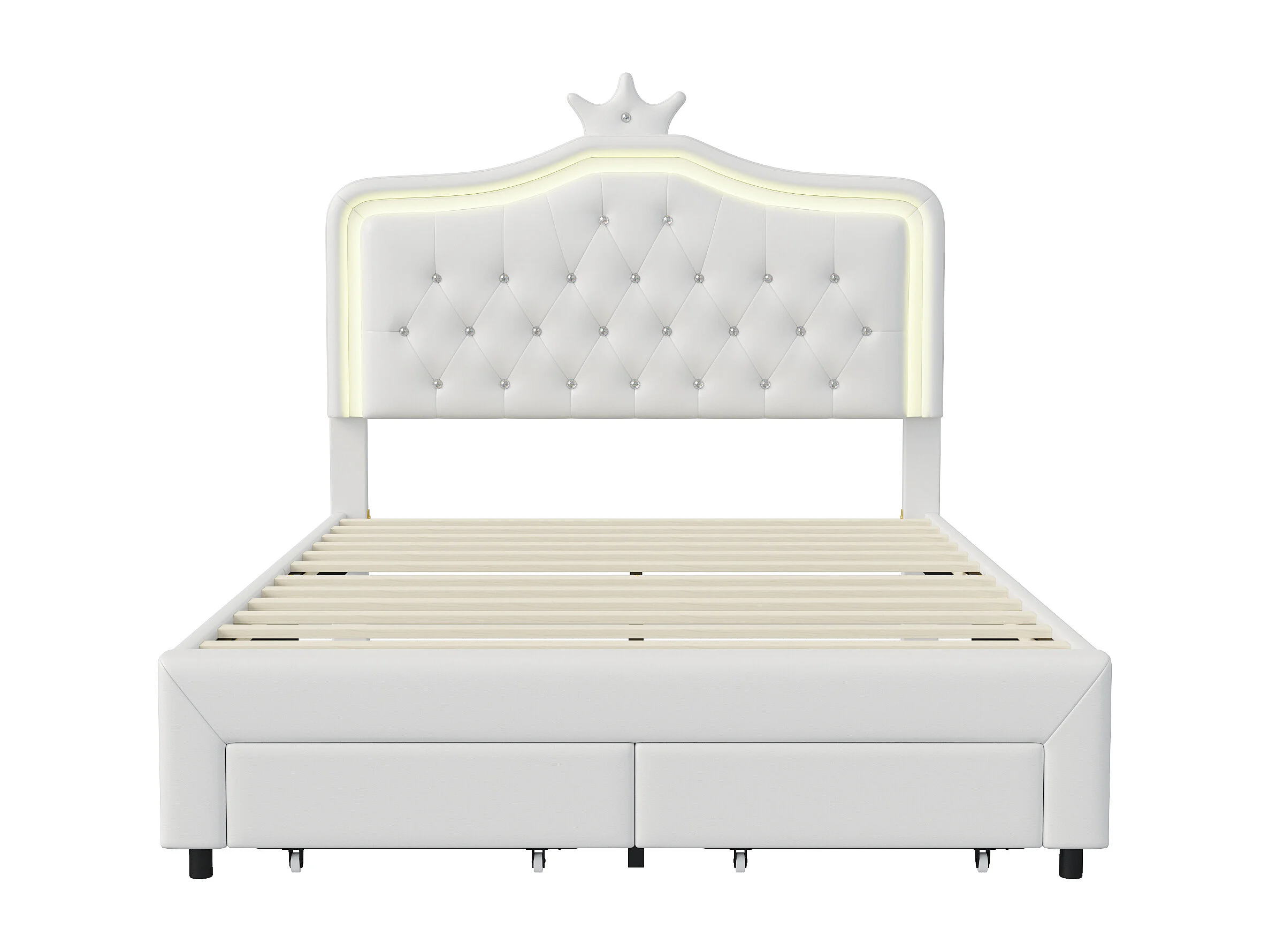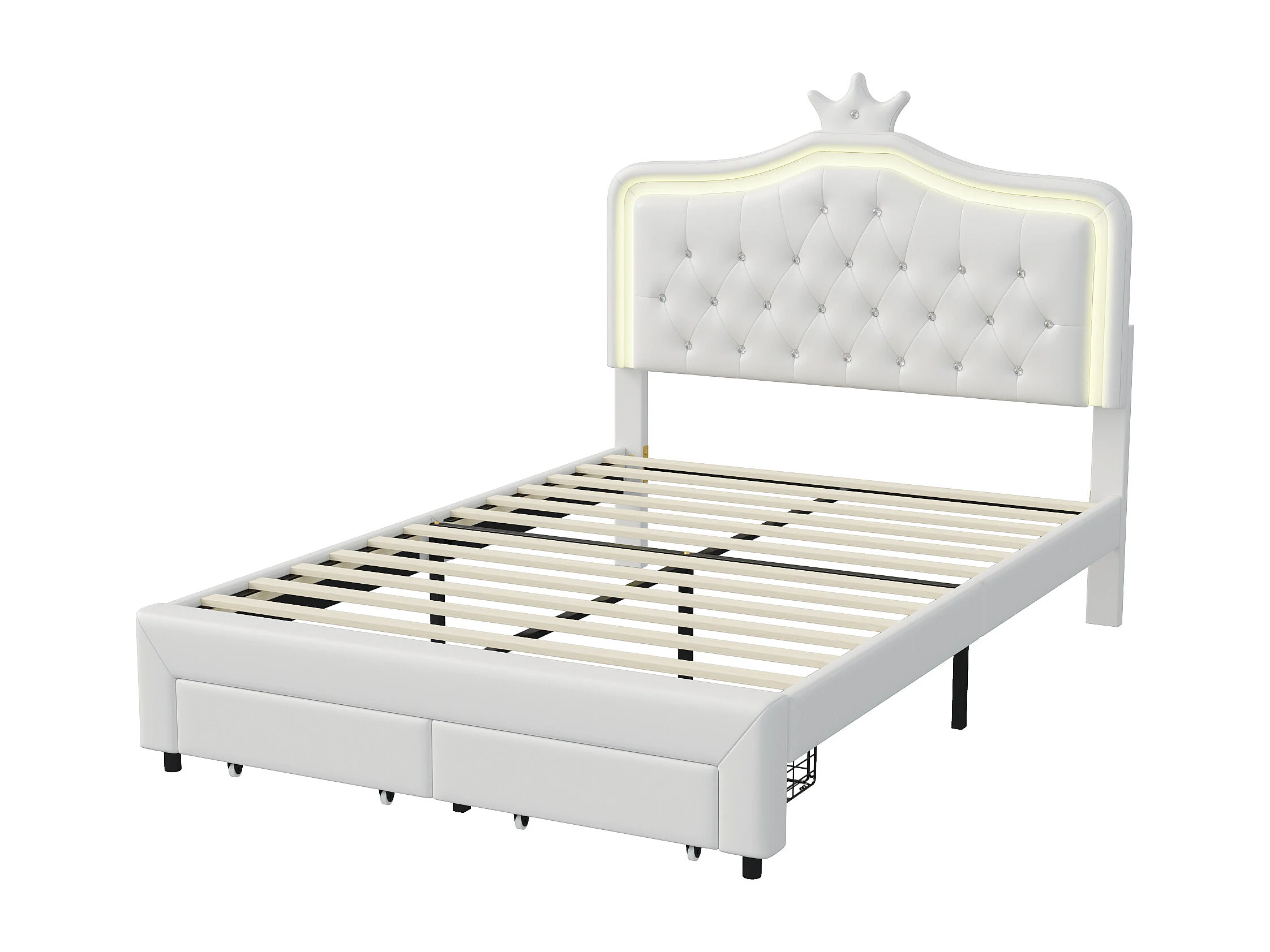 Lit Rembourré 140x200 Avec LED Tête De Lit, Sommier à Lattes En Bois, Blanc