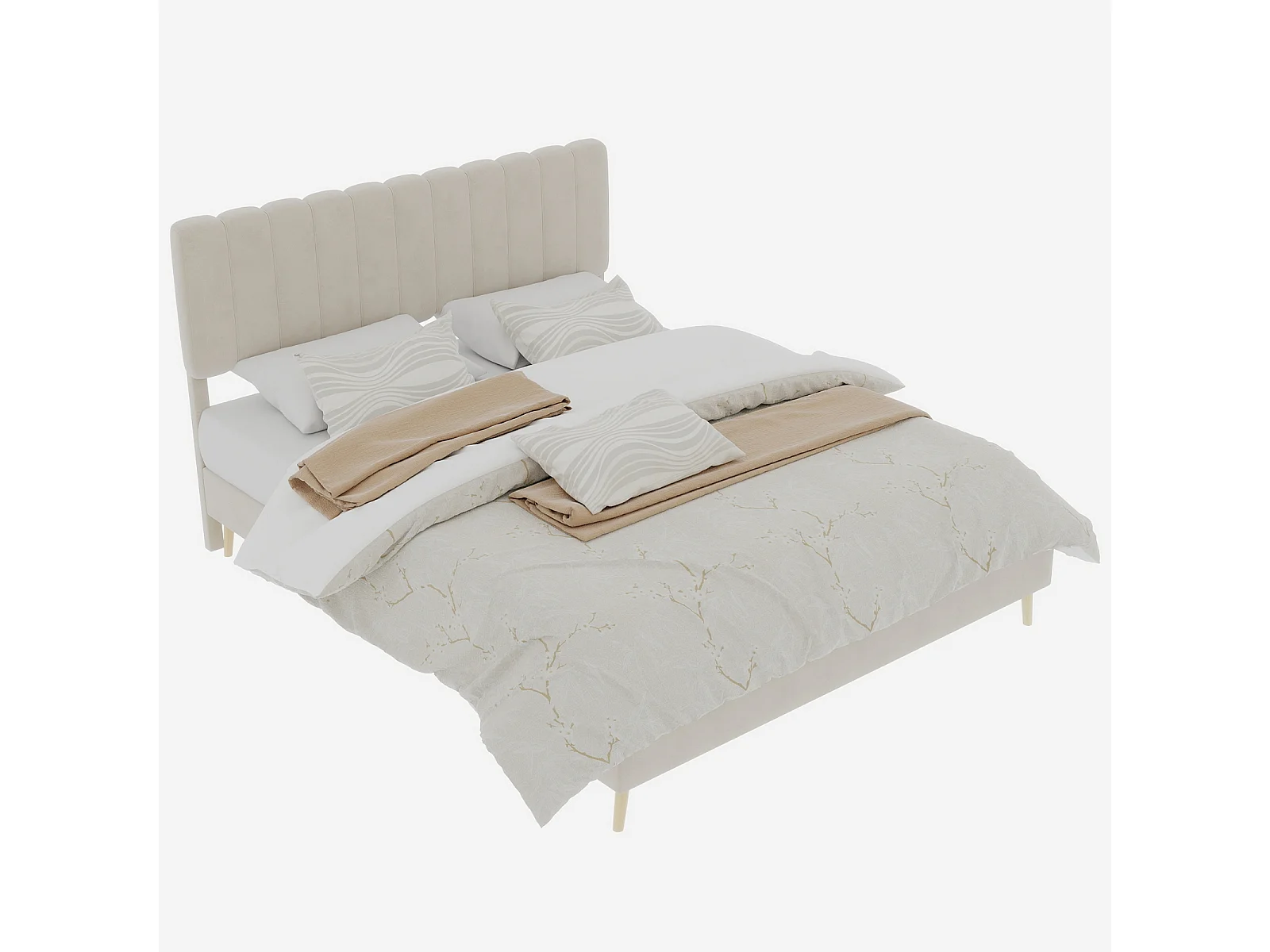 Lit rembourré 140x200cm avec tête de lit - Lit adulte en velours - Beige