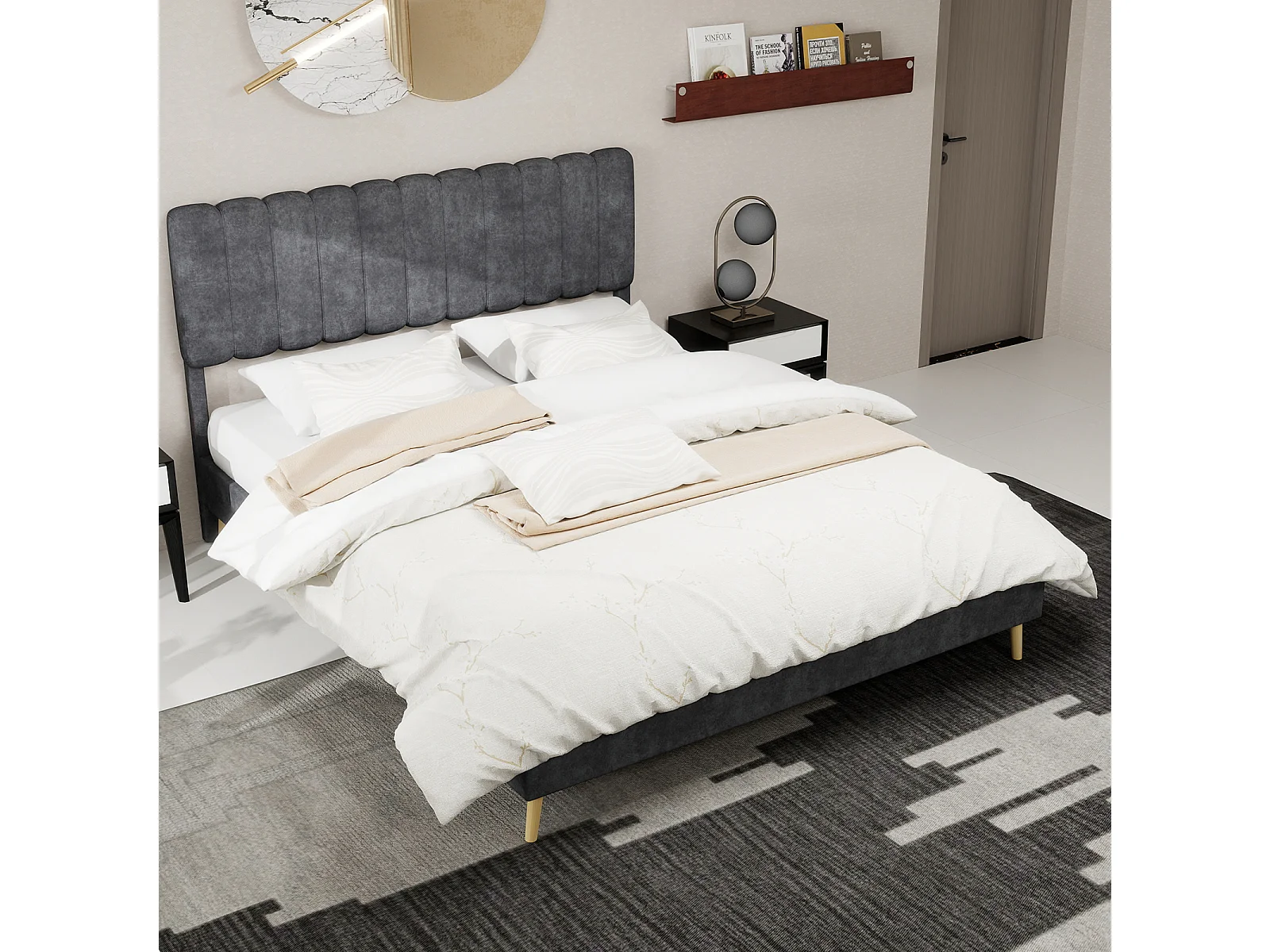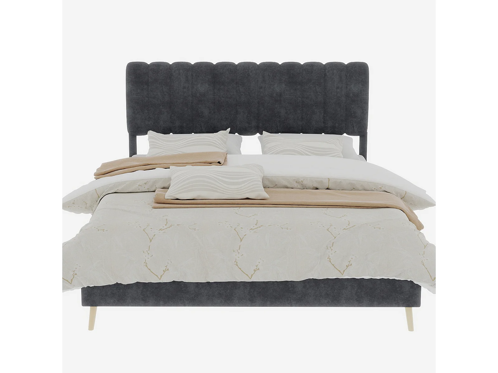 Lit rembourré 160x200cm avec tête de lit - Lit adulte en velours - Gris