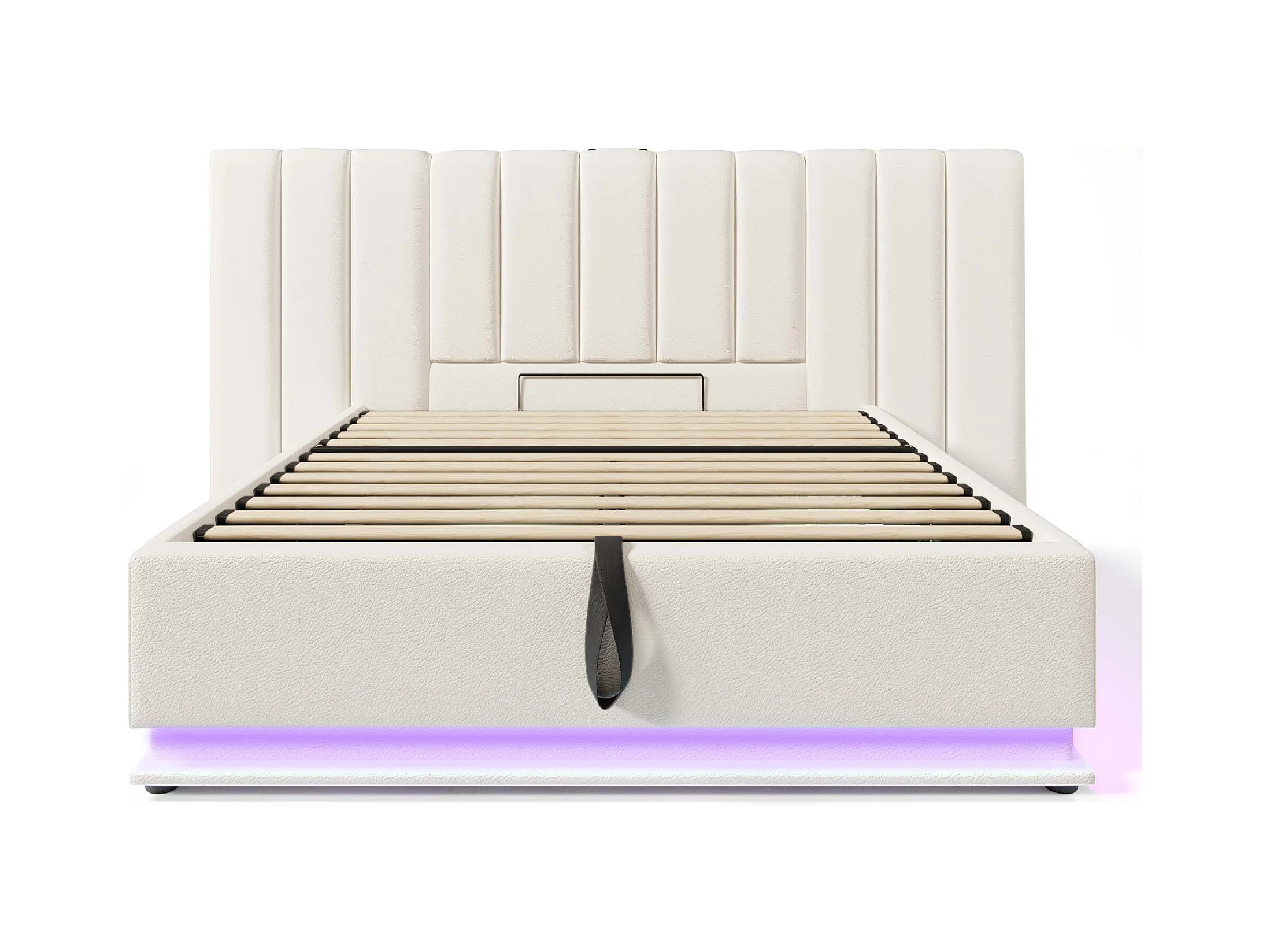Lit rembourré 160x200cm,lit double avec espace de rangement,contrôle LED via application