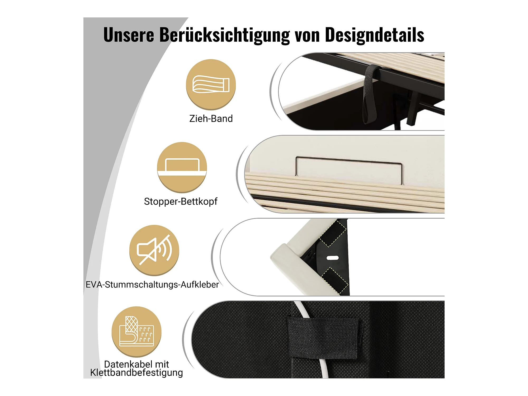 Lit canapé avec espace de rangement hydraulique, 160x200 cm, cadre en lin naturel, avec USB et Type-C (sans matelas)