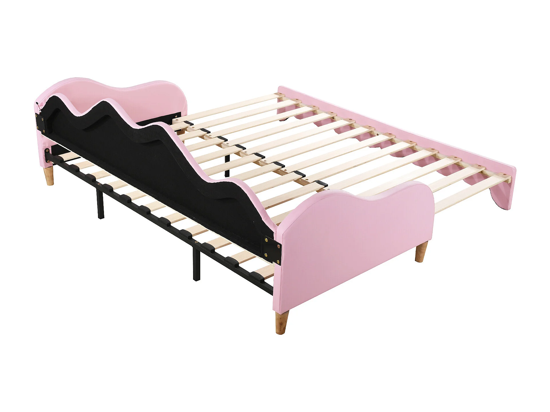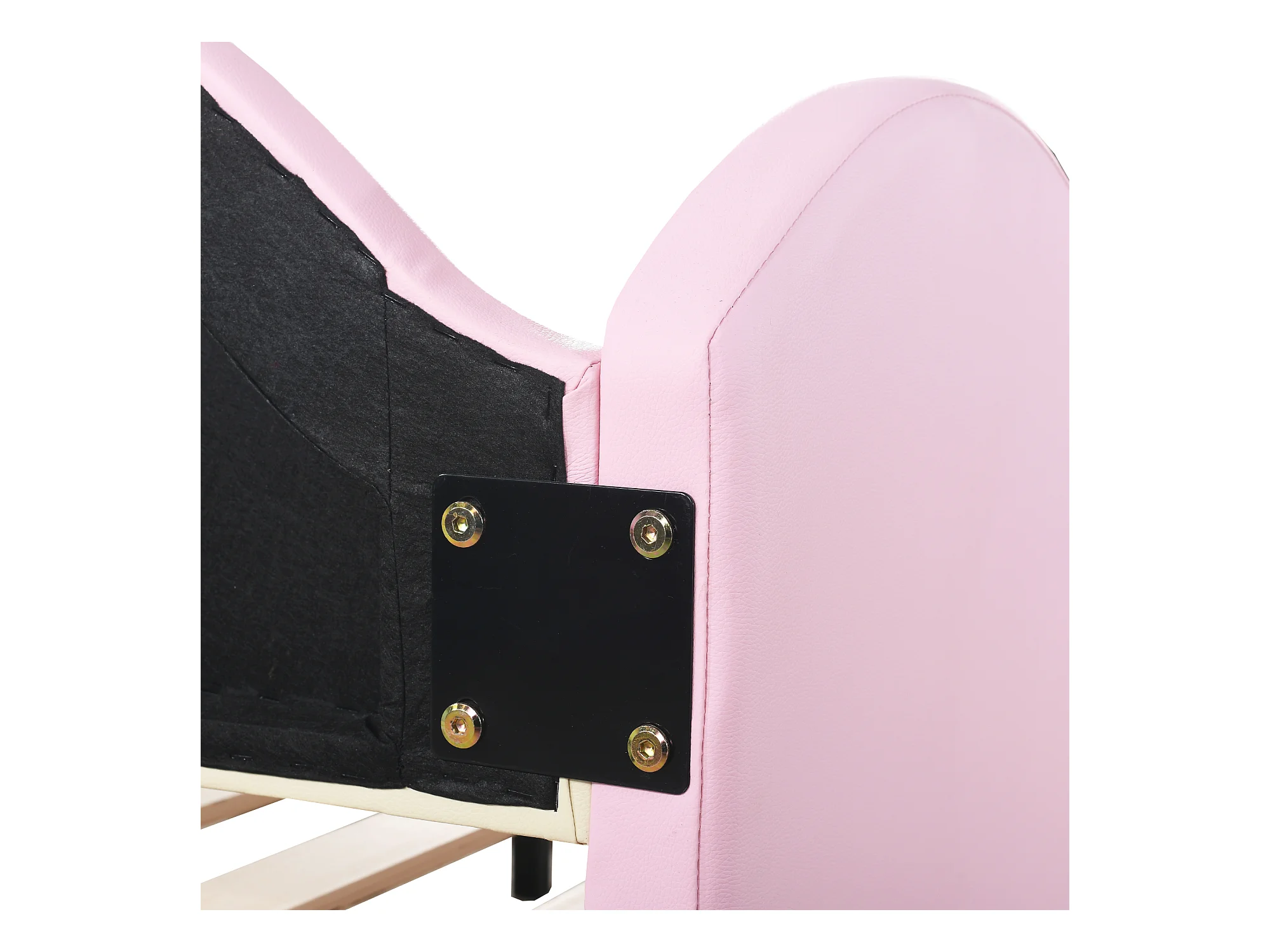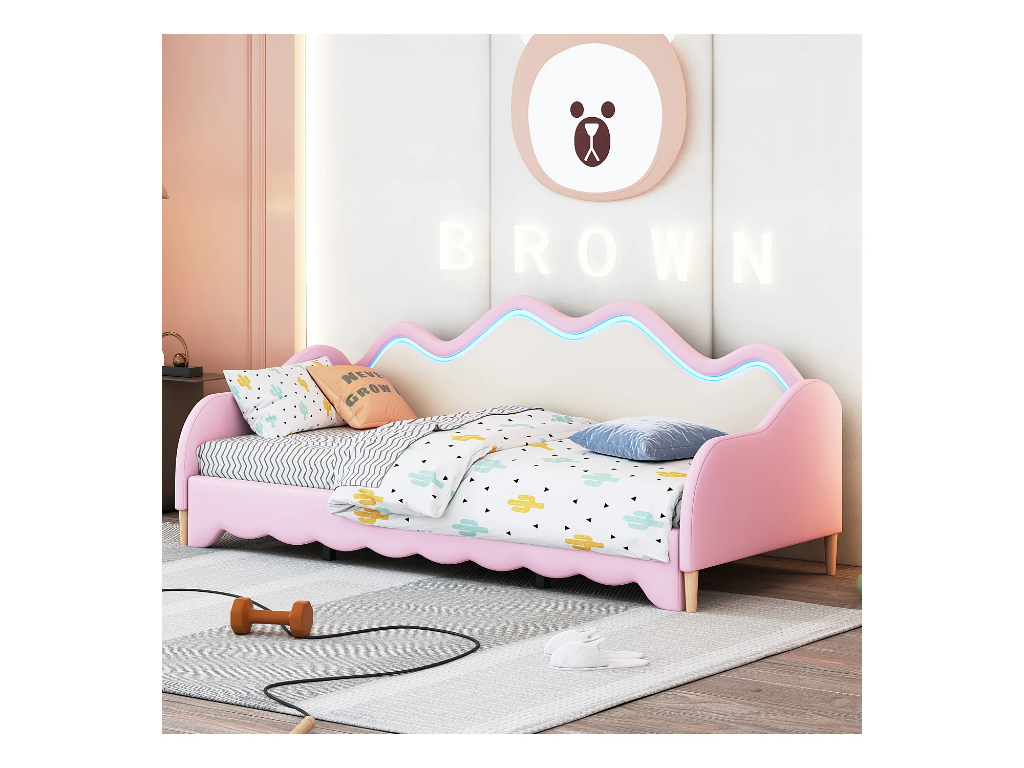 Lit enfant 90(180)x190 cm, canapé-lit simple avec lit gigogne et éclairage LED - en similicuir rose - sans matelas