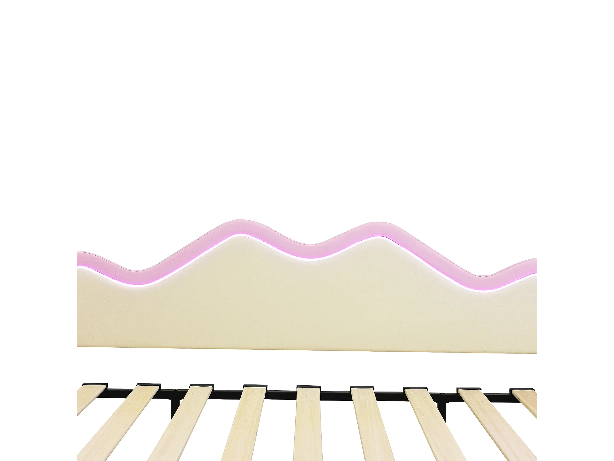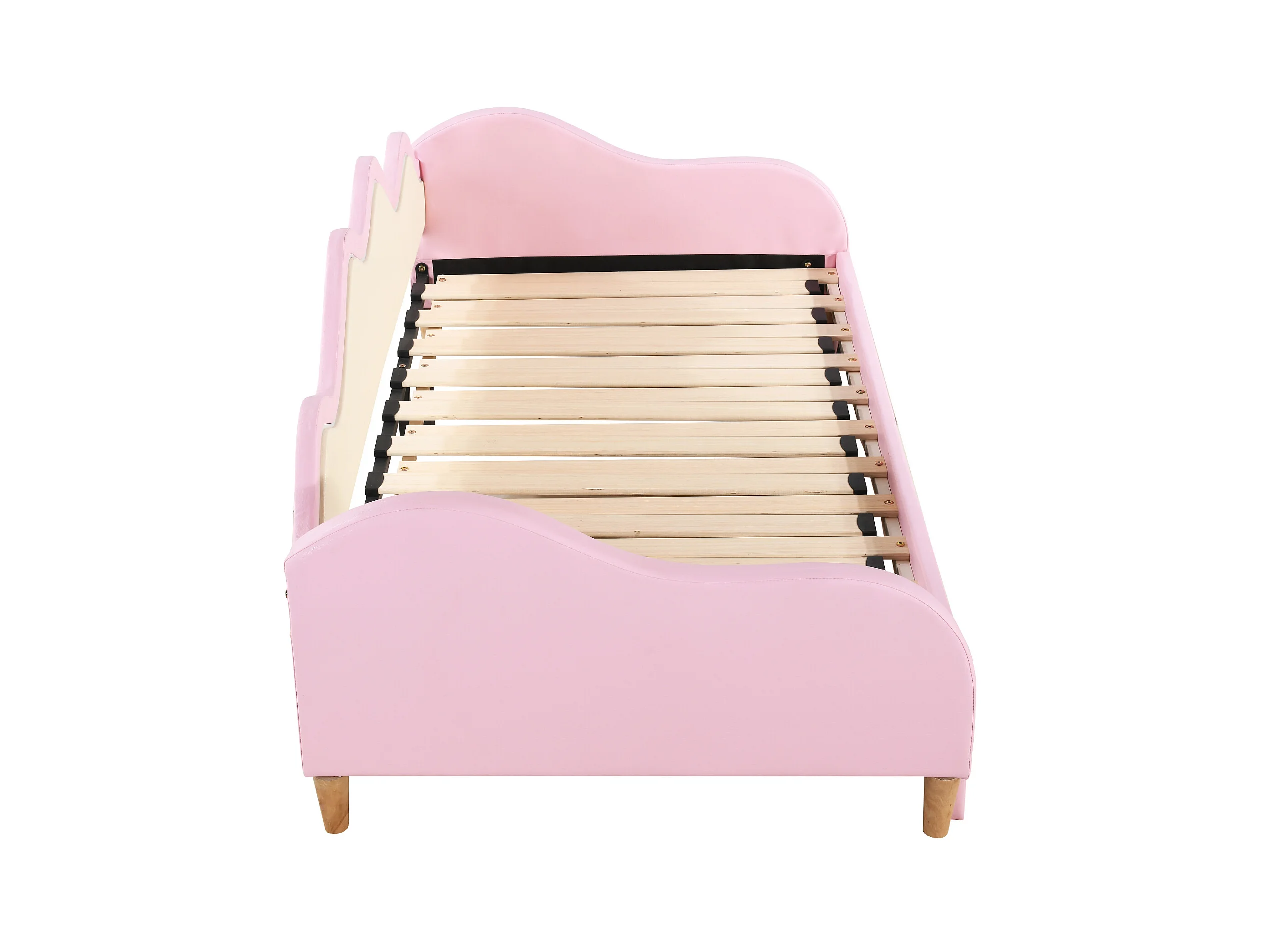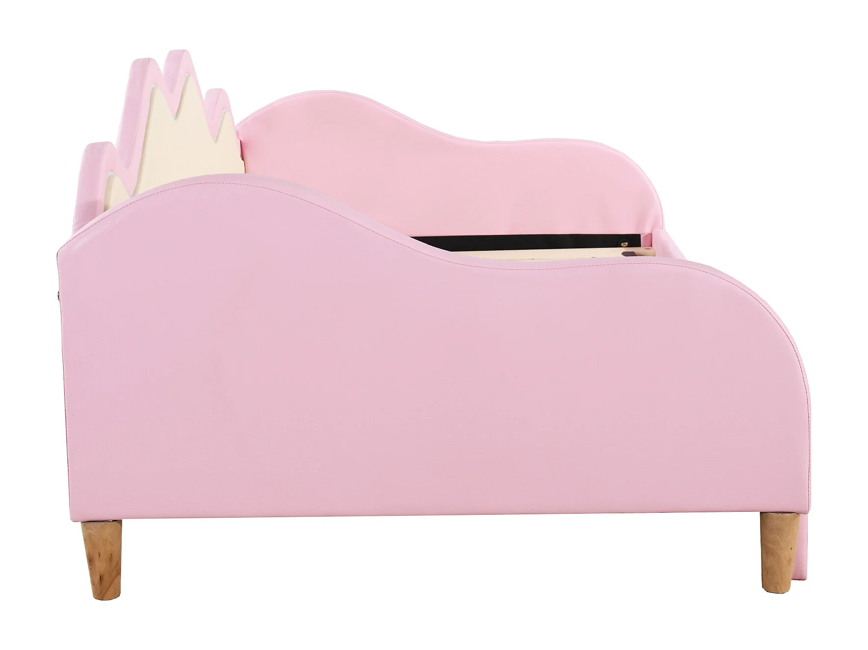 Lit enfant 90(180)x190 cm, canapé-lit simple avec lit gigogne et éclairage LED - en similicuir rose - sans matelas