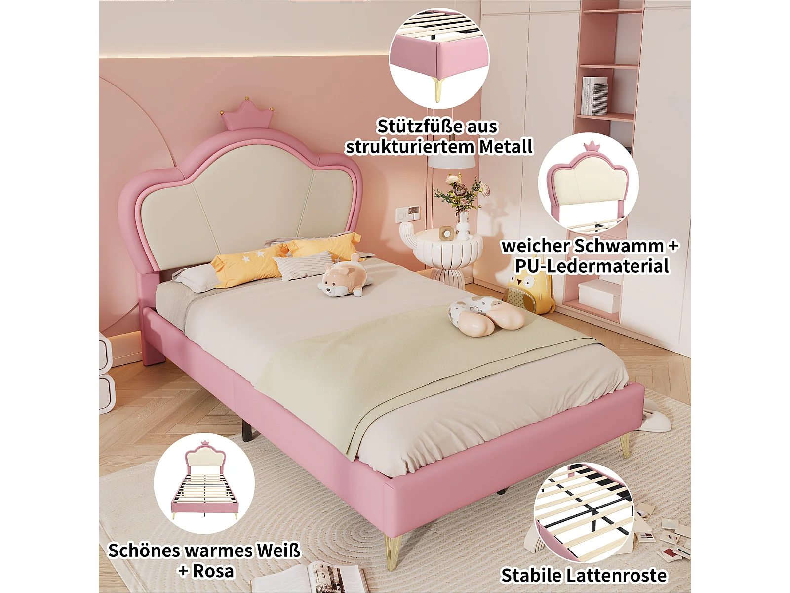Lit rembourré-avec des bords de protection doux-profil de tête de lit rembourré élégant-rose+blanc-90×200cm