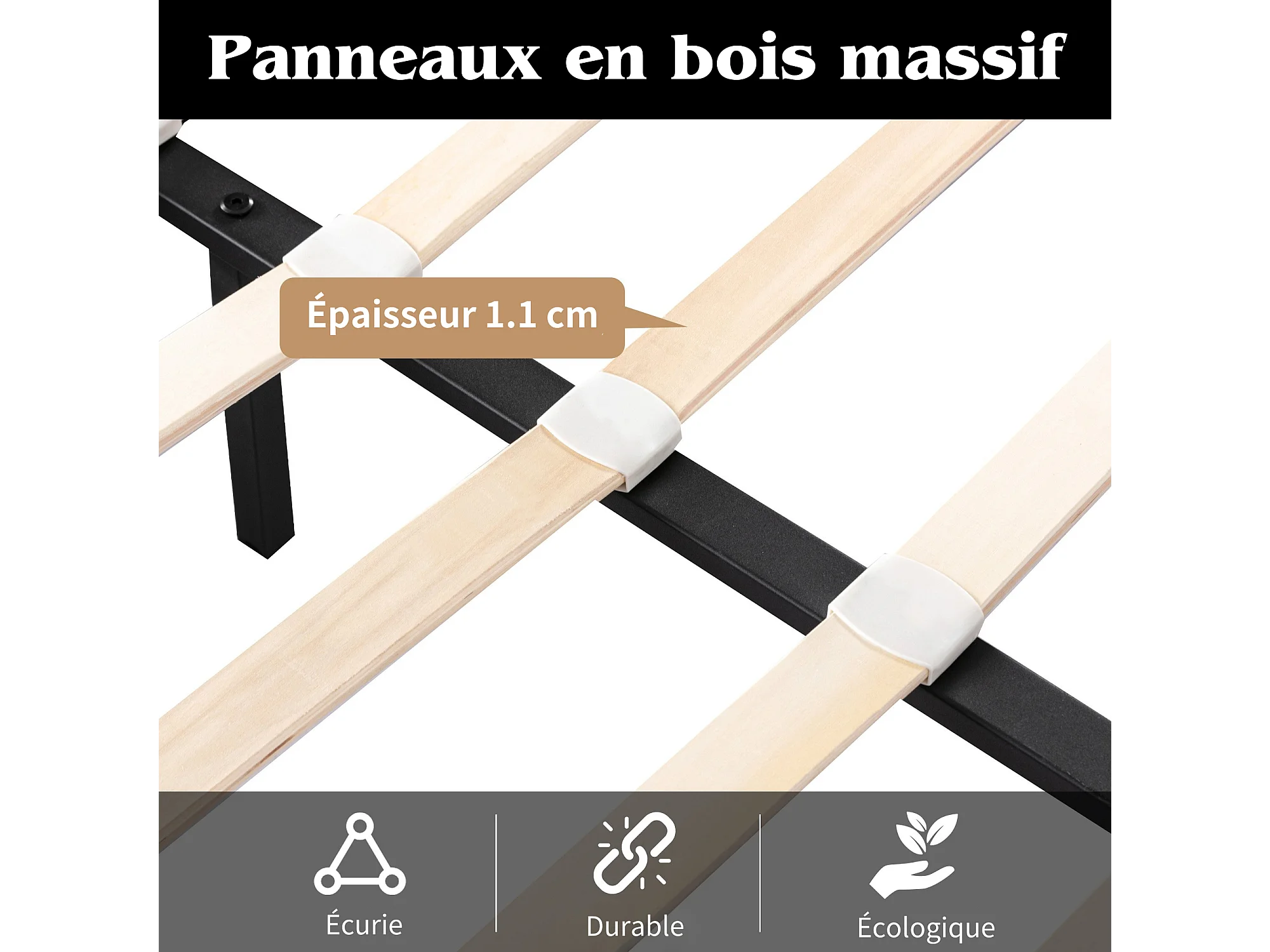 Lit rembourré avec LED, 140\190cm, sommier à lattes et rangement, tête de lit éclairée, noir, similicuir (Dimensions : 189.87 x 31.12 x 19.05 cm)