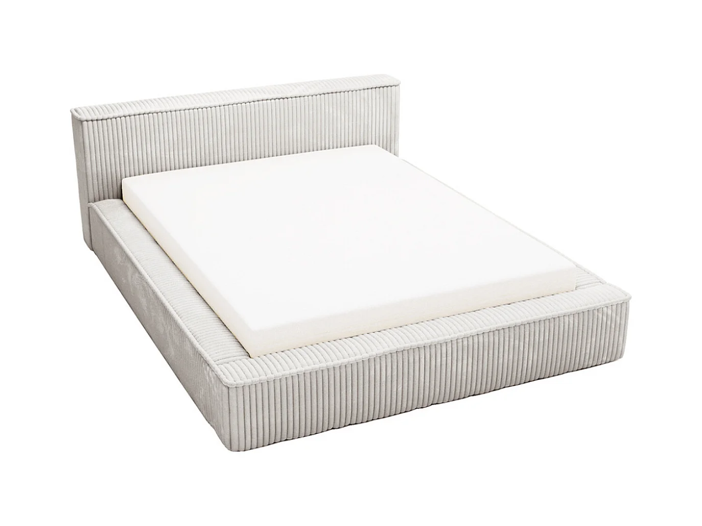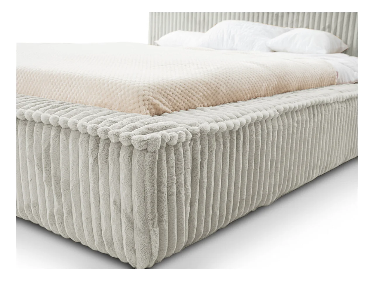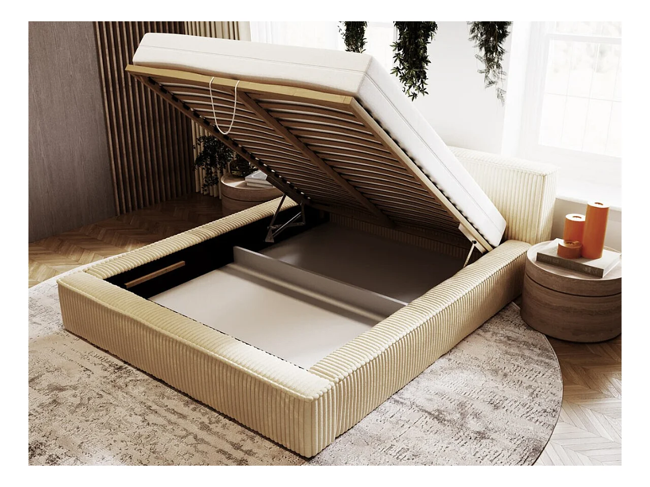 Lit rembourré avec rangement - 140 x 200 - lit double - côtelé - gris clair - Lago