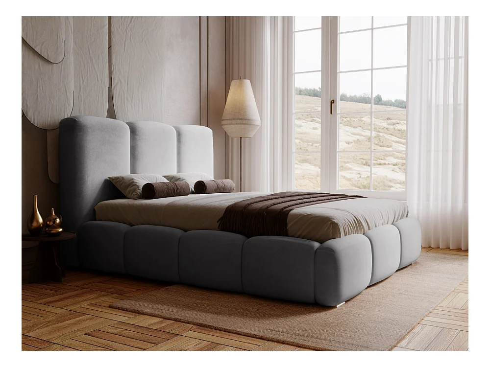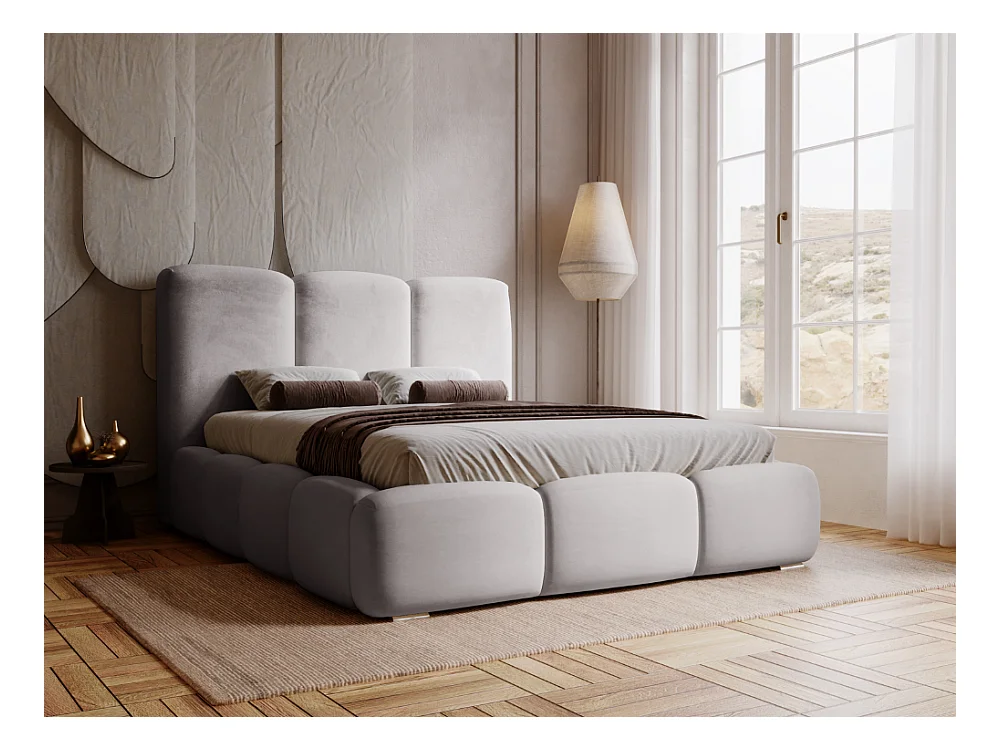 Lit rembourré avec rangement - 140 x 200 - lit double - velours - gris - Wave