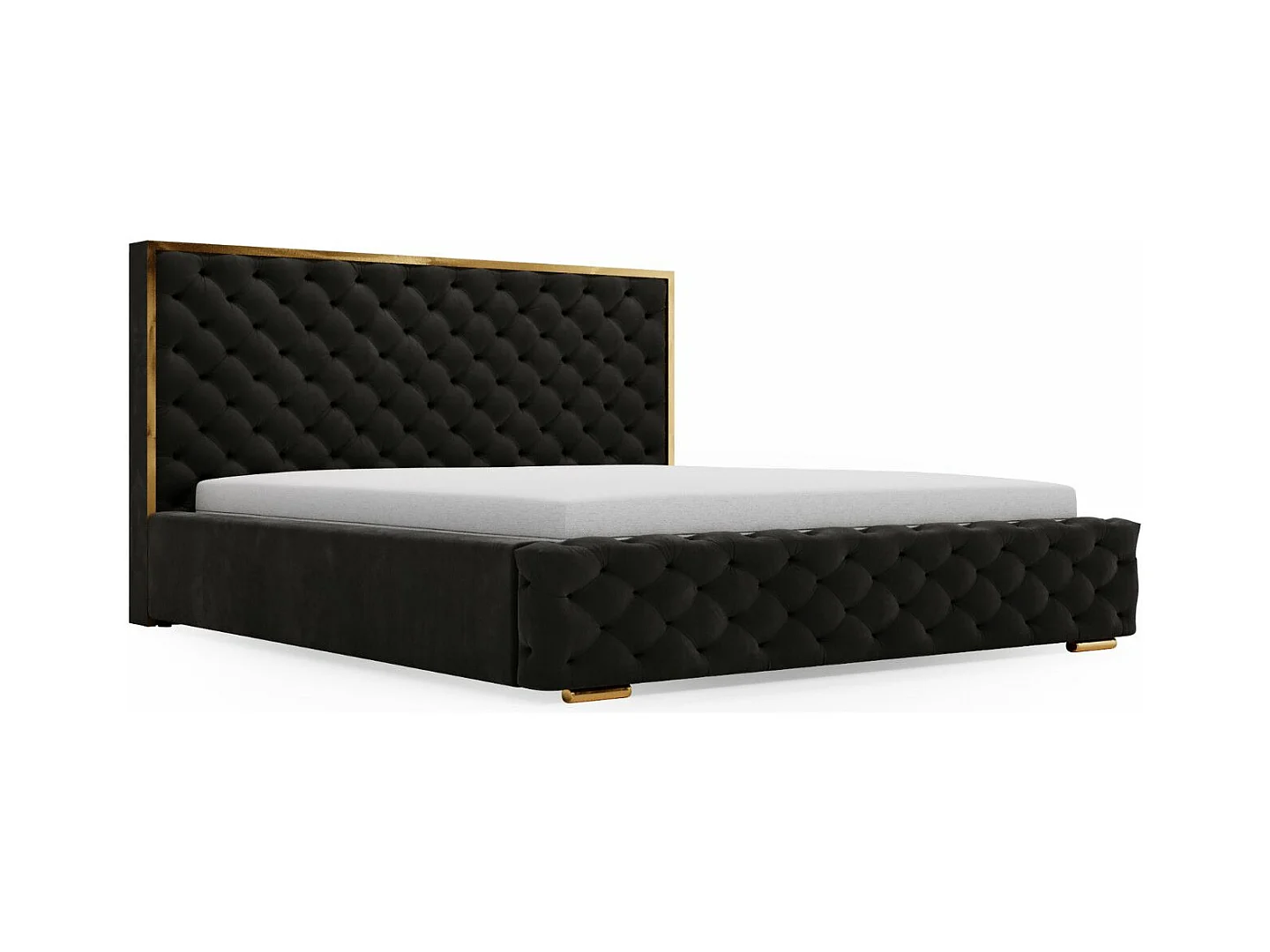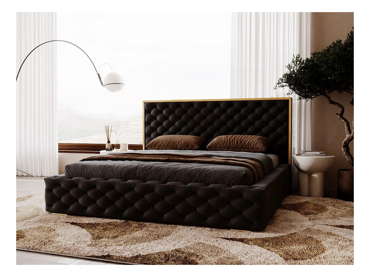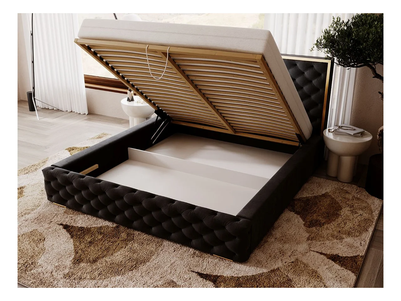 Lit rembourré avec rangement - 140 x 200 - lit double - velours - noir - Marano