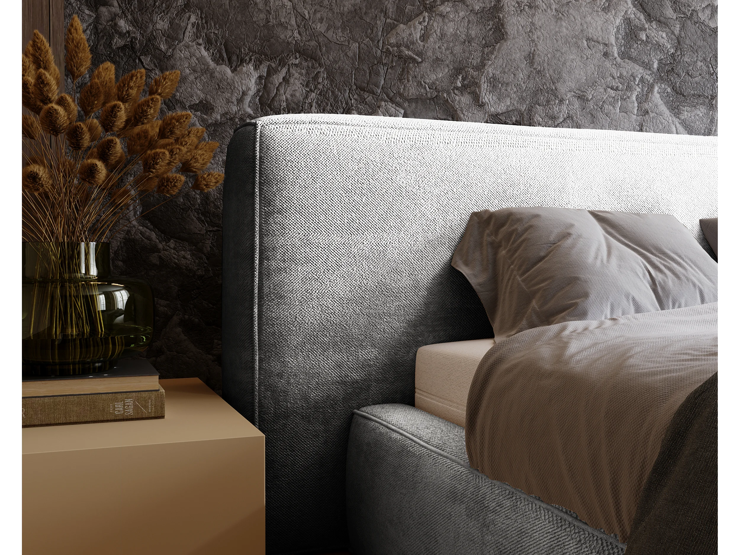 Lit rembourré avec rangement - 180 x 200 - lit double - chenille - gris clair - Monza