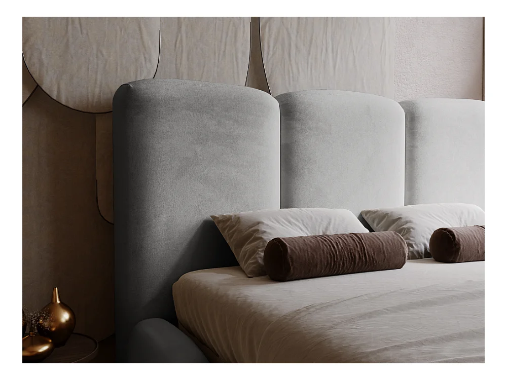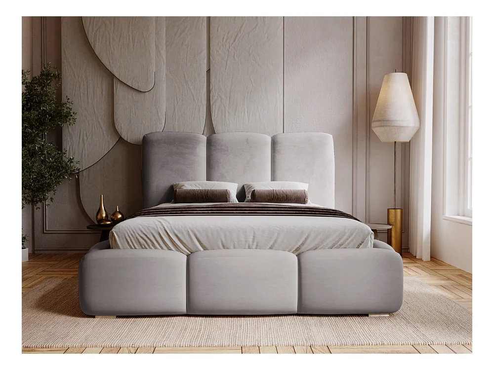 Lit rembourré avec rangement - 180 x 200 - lit double - velours - gris - Bubble