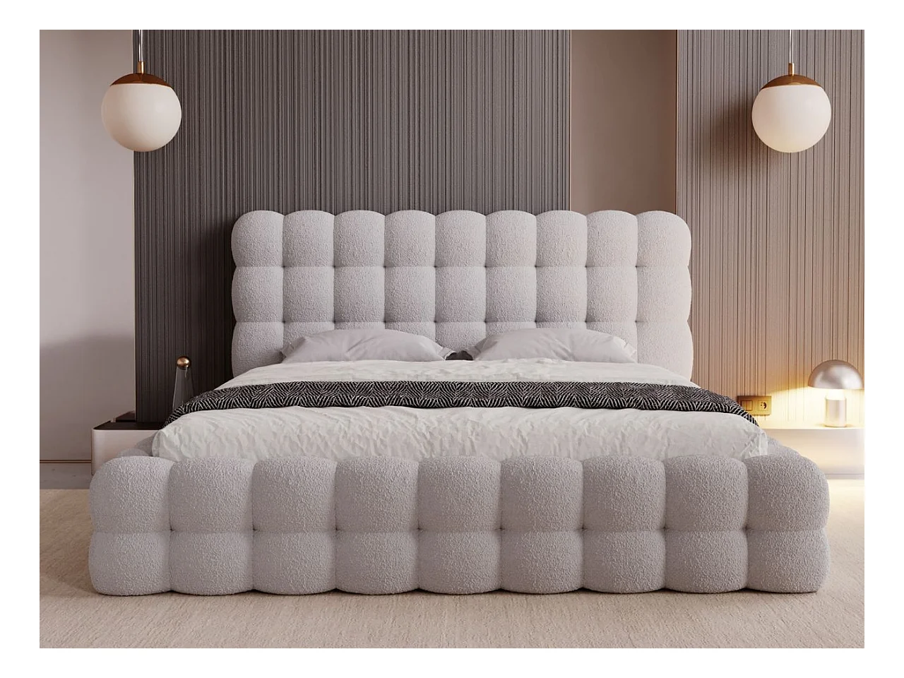 Lit rembourré avec rangement - 200 x 200 - lit double - bouclé - gris - Twist