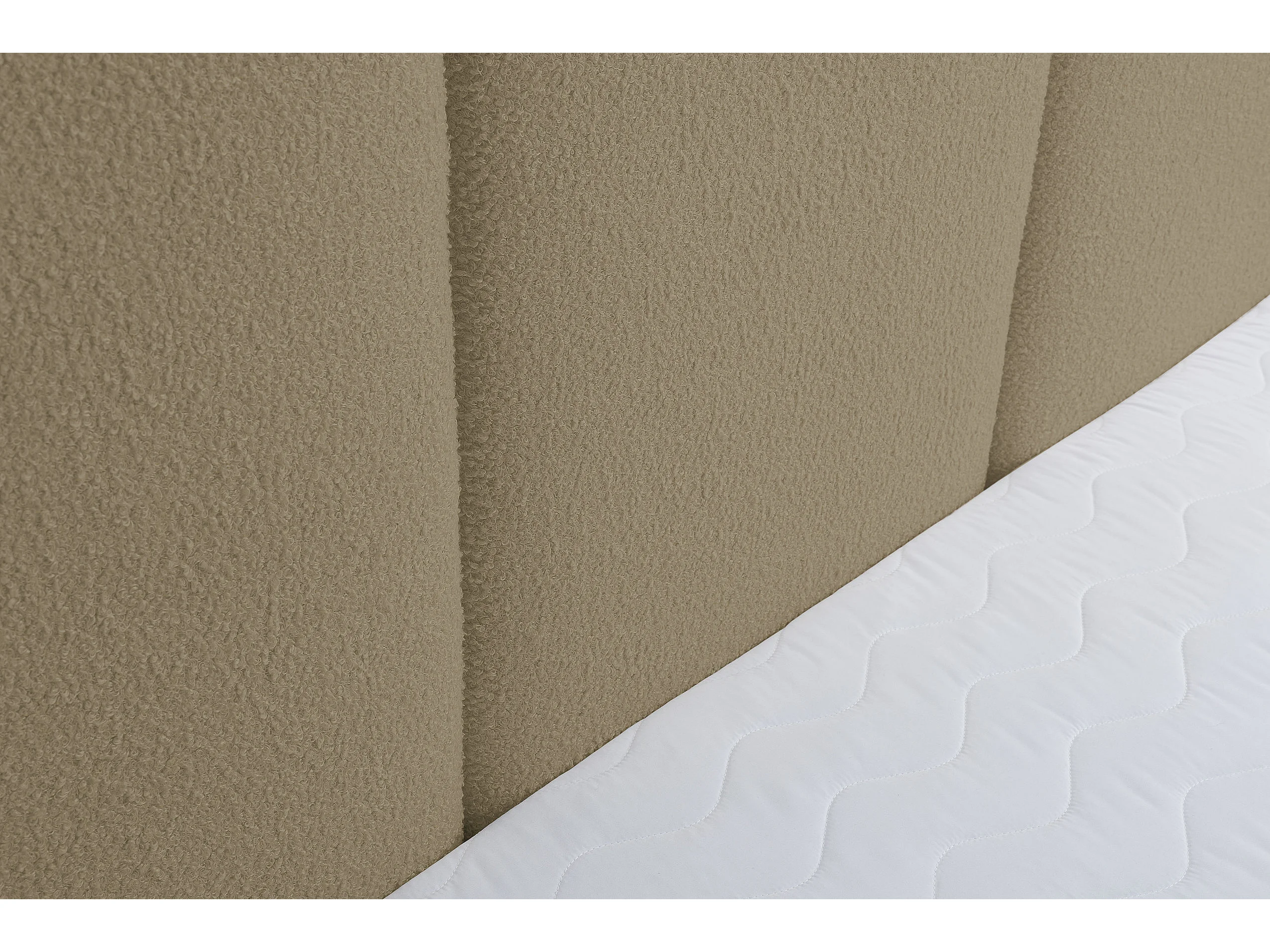 Lit rembourré Marco avec tête de lit, 140 x 200 cm, lit double avec coffre de rangement et sommier à lattes en métal, tissu bouclé, couleur : marron clair
