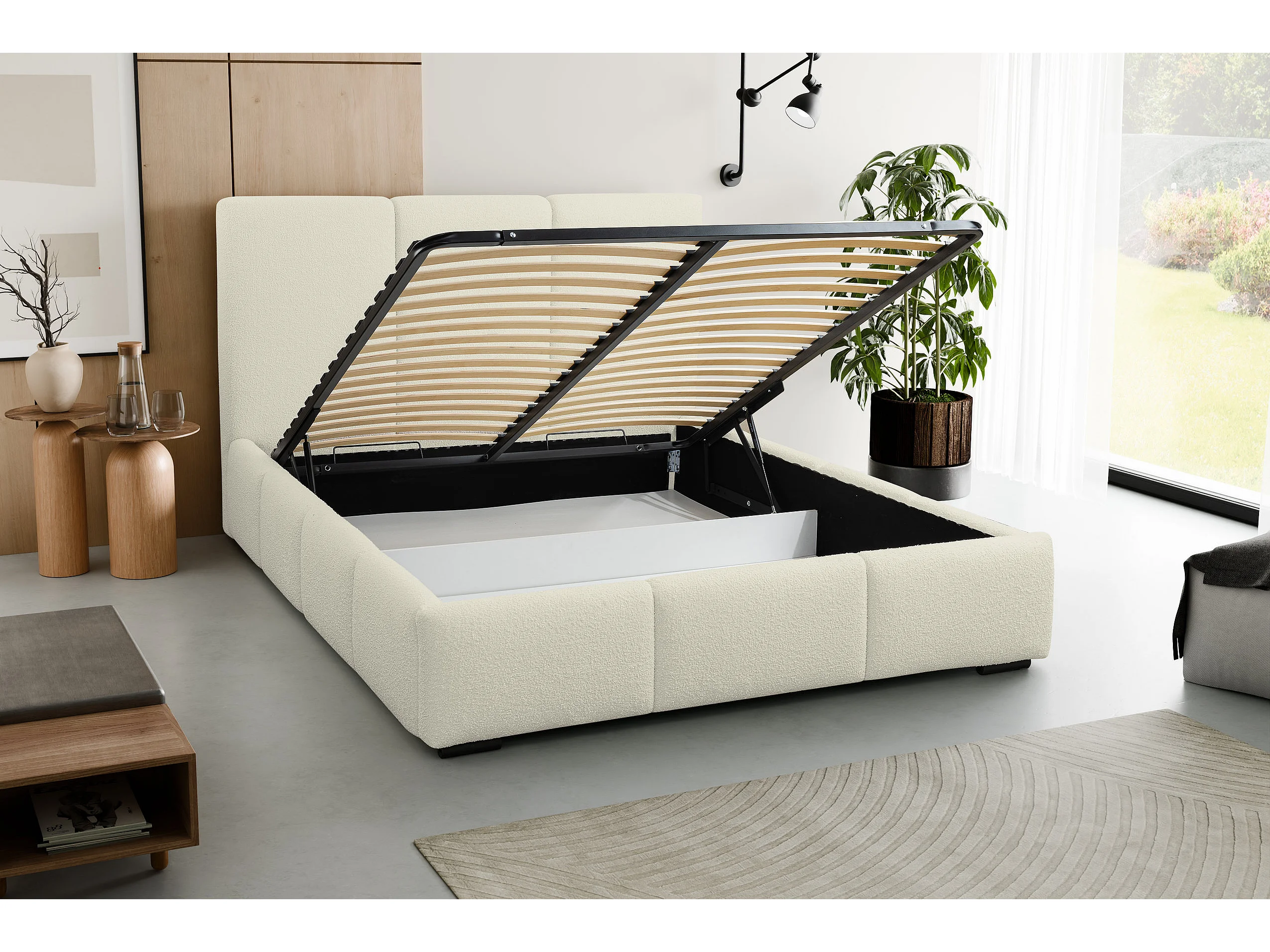 Lit coffre Booby prestige – Velours moderne et rangement optimisé-Couleur Crème-160x200