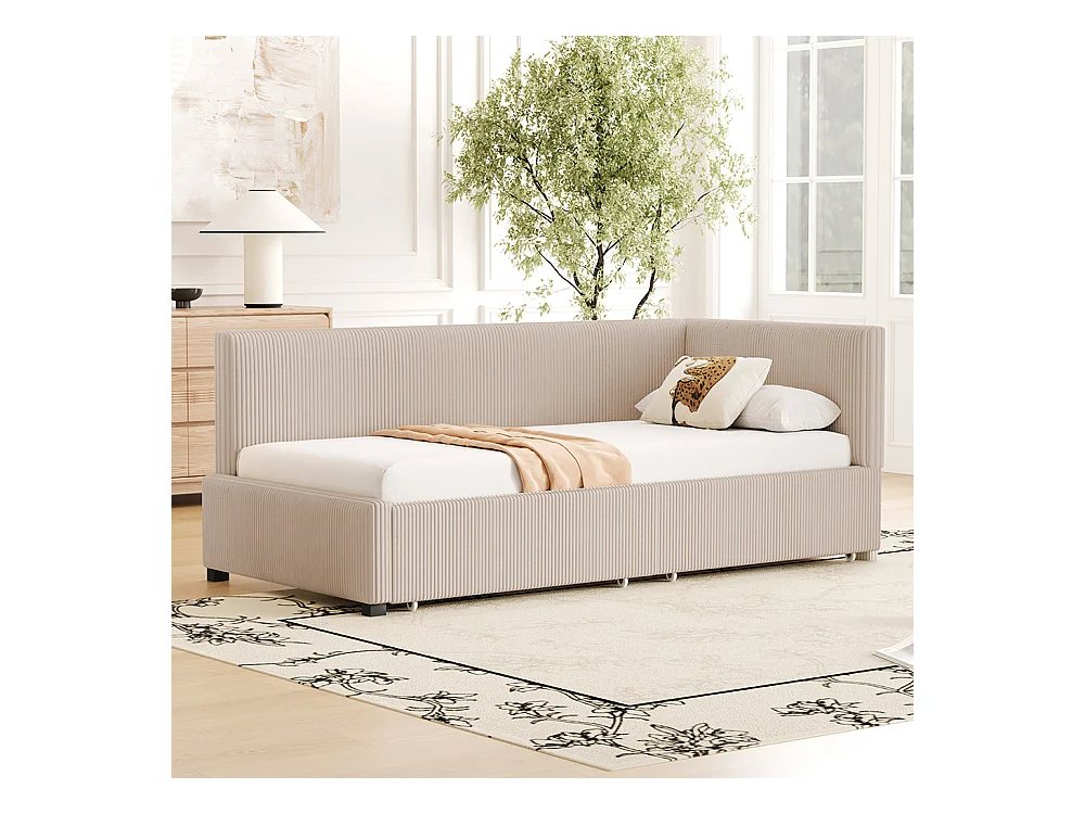 Lit rembourré, canapé-lit 90*200 cm, avec 2 grands tiroirs de rangement, tissu velours doux pour la peau, beige