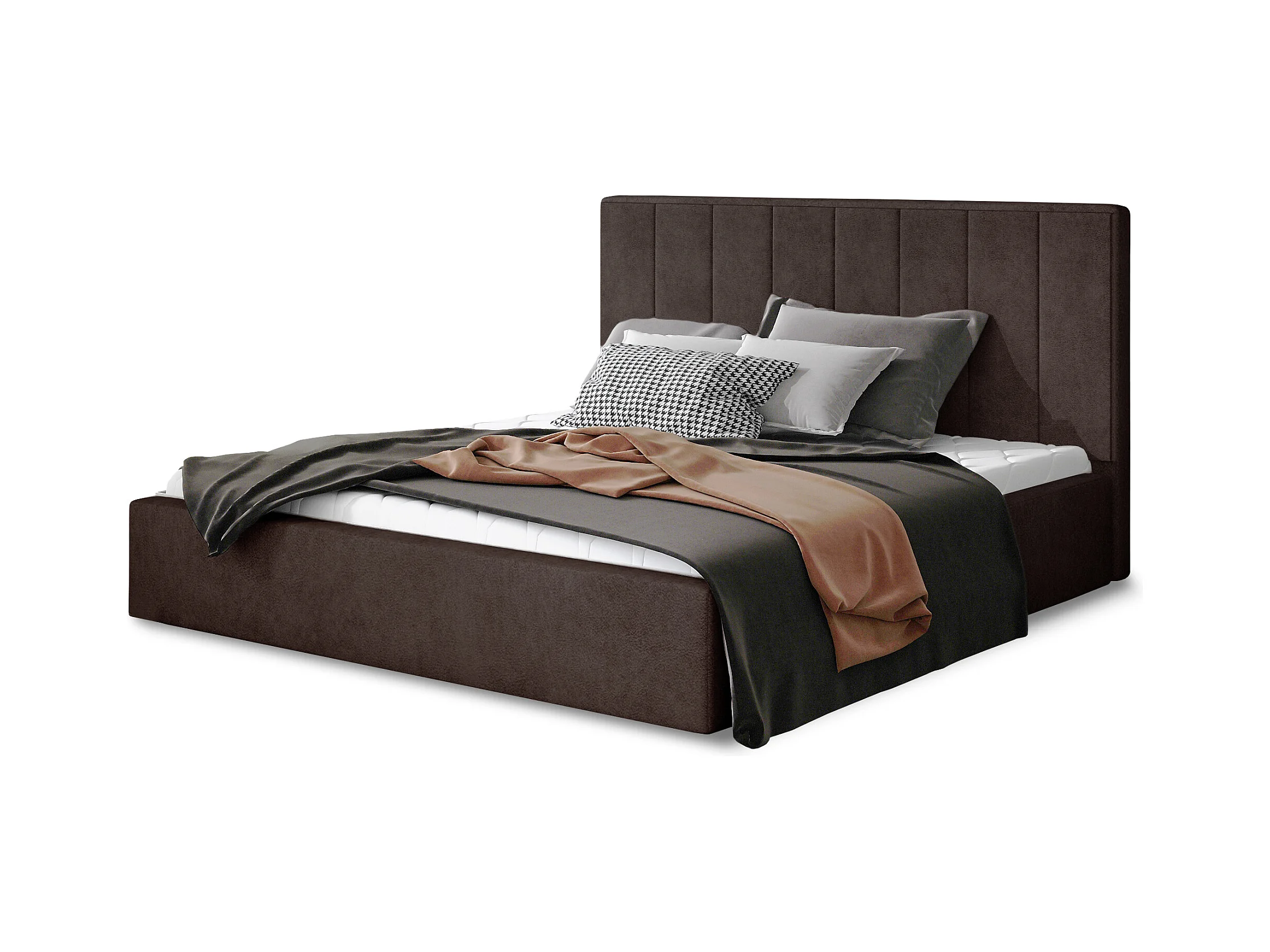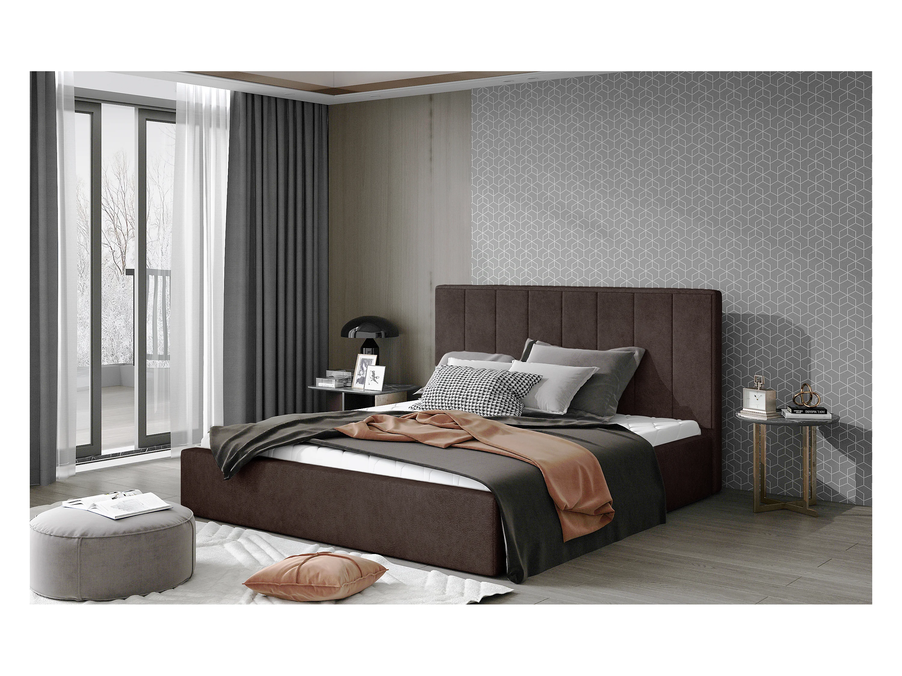 Lit rembourré de luxe tissu Vareze-Couleur Marron-180x200-Version avec sommier
