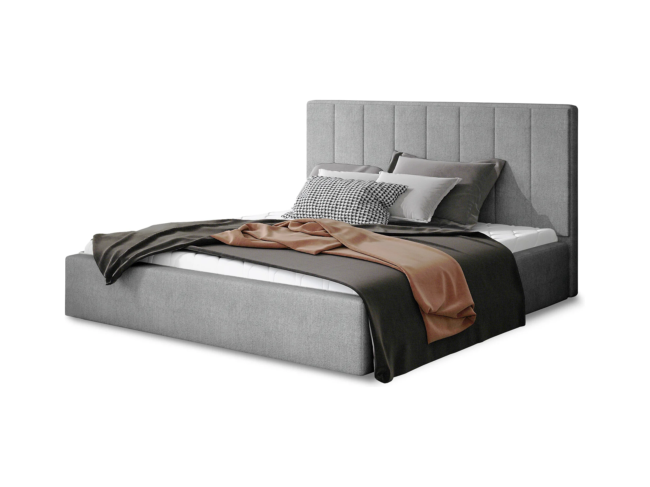 Lit adulte avec coffre de rangement Vika – Tissu capitonné-Marron-180x200