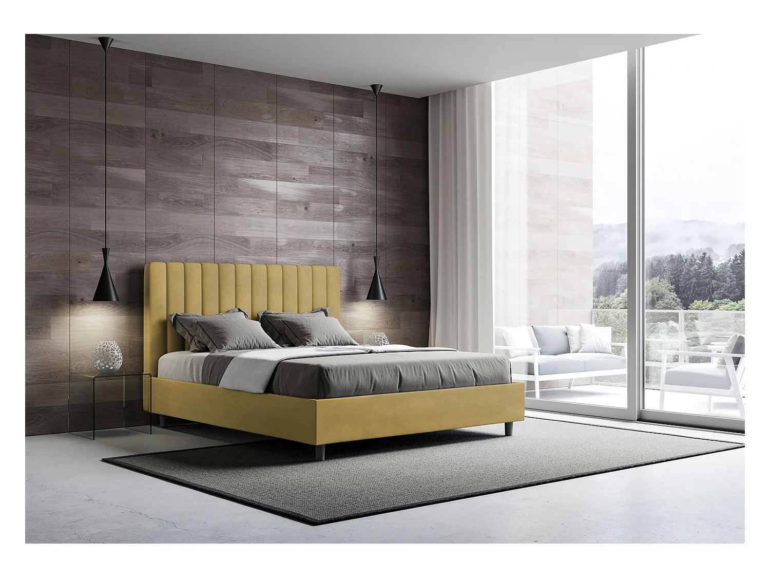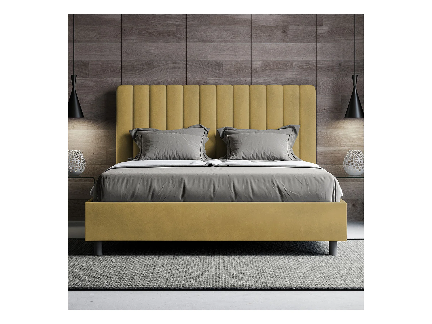 Lit sans sommier rembourré 160x190 microfibre ocre Agueda